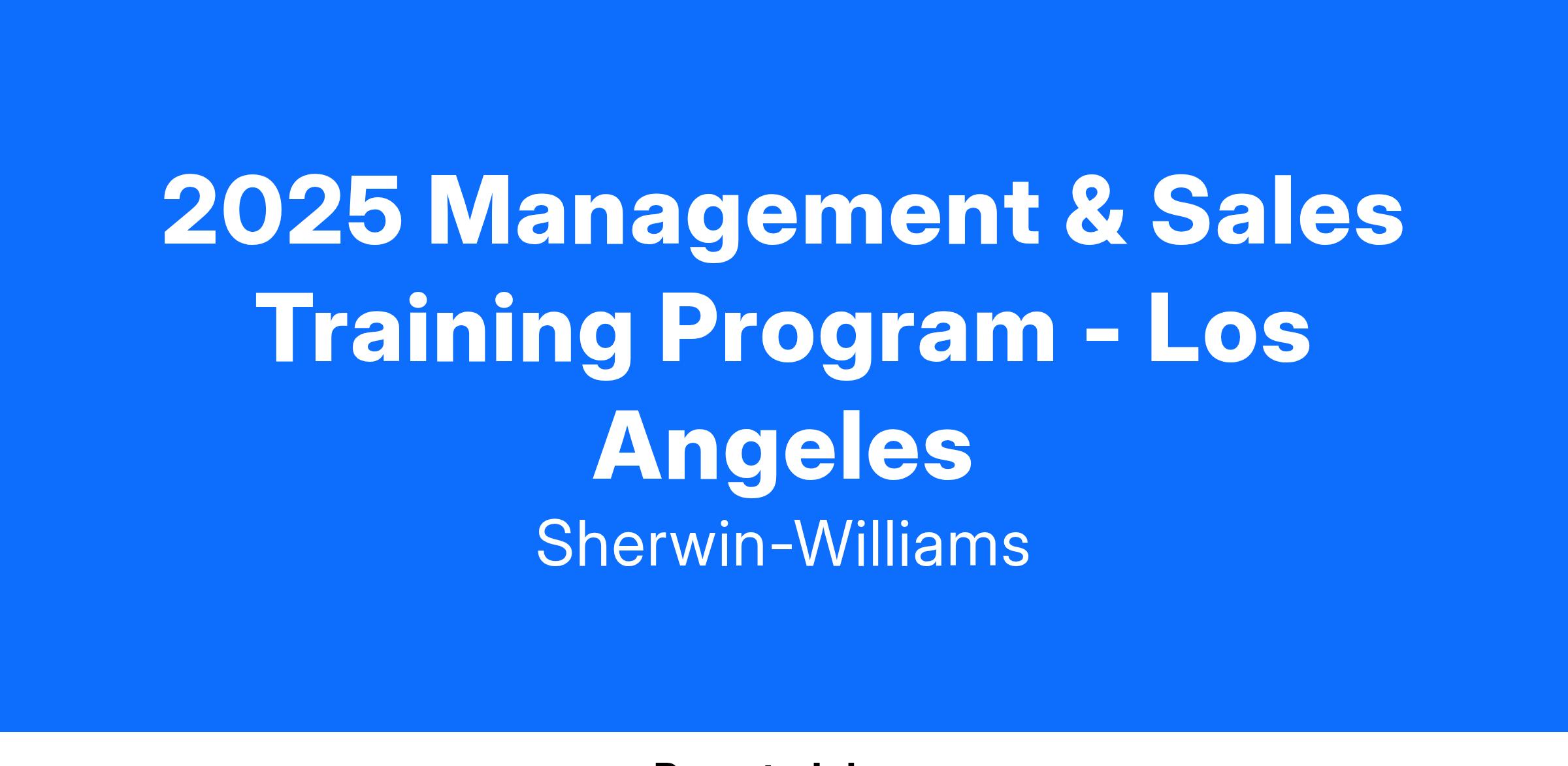 The Sherwin-Williams Management & Sales Training Program is designed to develop Sherwin’s future leaders. This comprehensive program provides classroom instruction, extensive on-the-job training, and self-study assignments over an 8-week period to prepare trainees for promotion to an open Assistant Store Manager role.