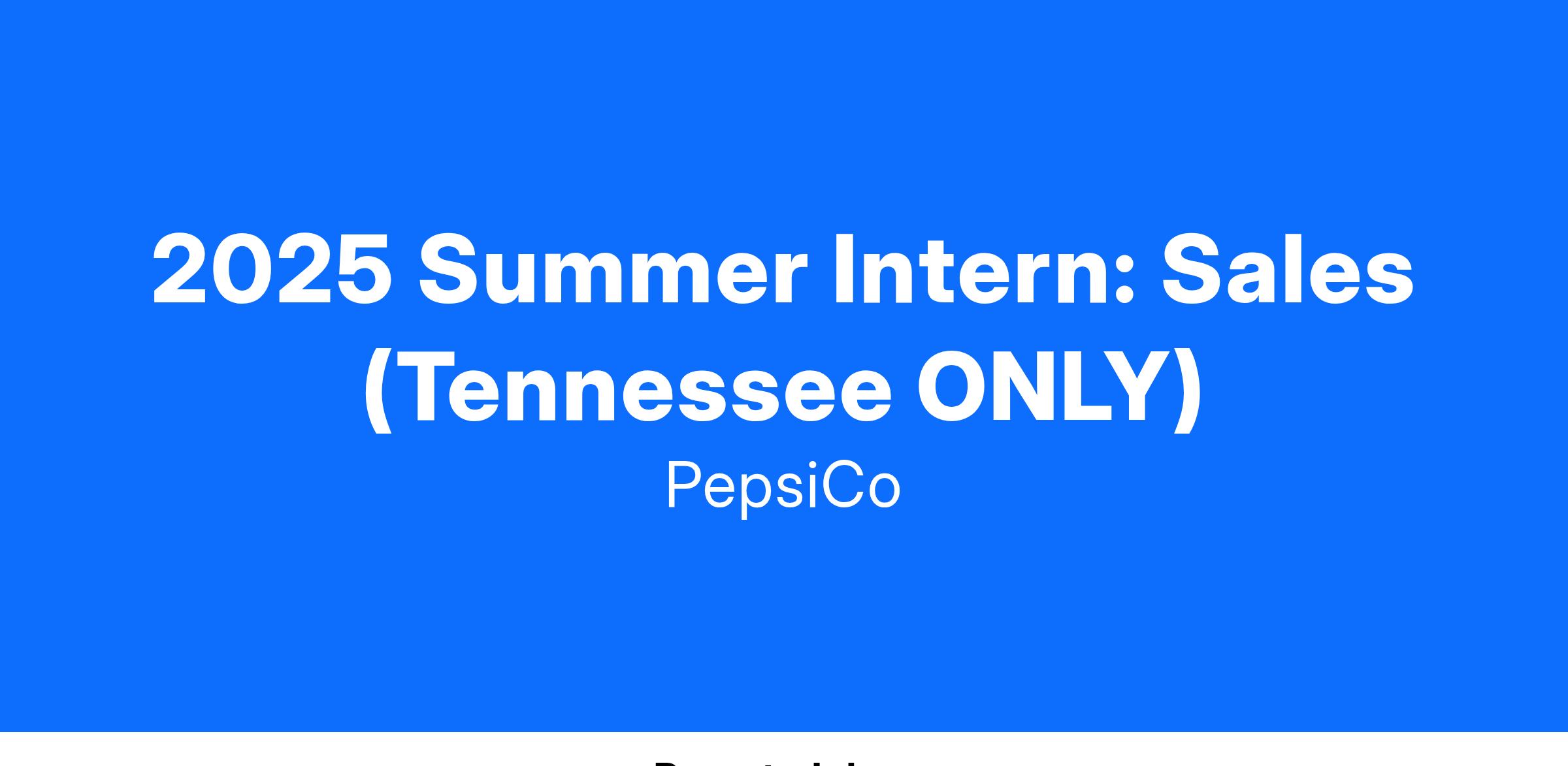 2025 Summer Intern: Sales (Tennessee ONLY)