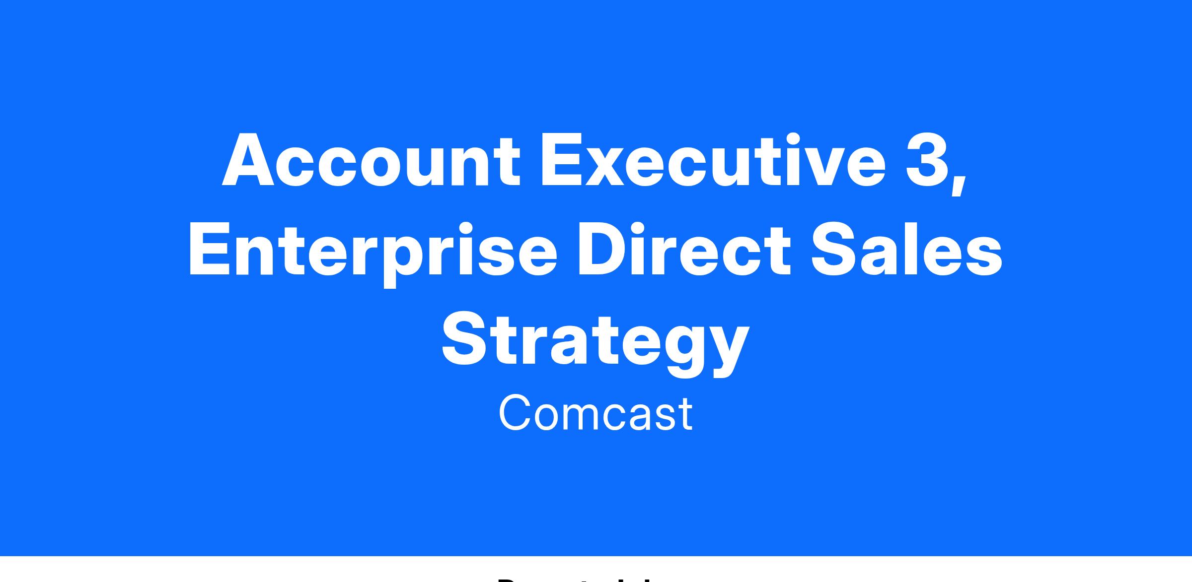 Responsible for the sales strategy of Comcast High Capacity Ethernet Networks, Internet, Video and Voice-based services to Government, Education and Medical institutions (G.E.M.) as well as complex enterprise customers. Works as part of a team to drive sales by focusing on acquisition, development and management of strategic prospective clients in designated territories. Designs and delivers live sales presentations to prospective strategic clients, develops relationships with clients and the community and positions the Comcast brand as key components of the sales strategy, in keeping with Comcast's touchstones. Has in-depth experience, knowledge and skills in own discipline. Usually determines own work priorities. Acts as a resource for colleagues with less experience.