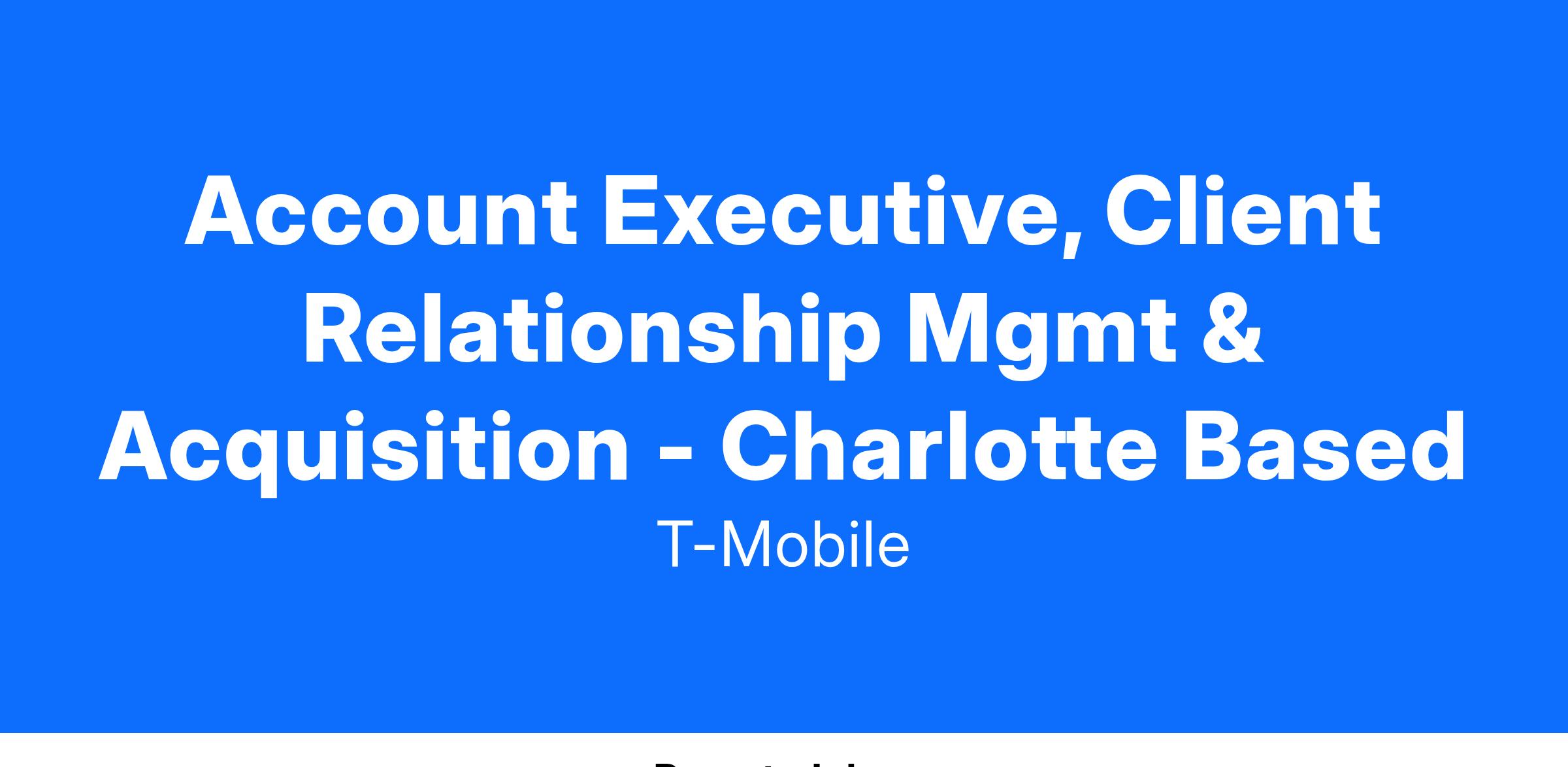 Account Executive, Client Relationship Mgmt & Acquisition - Charlotte Based