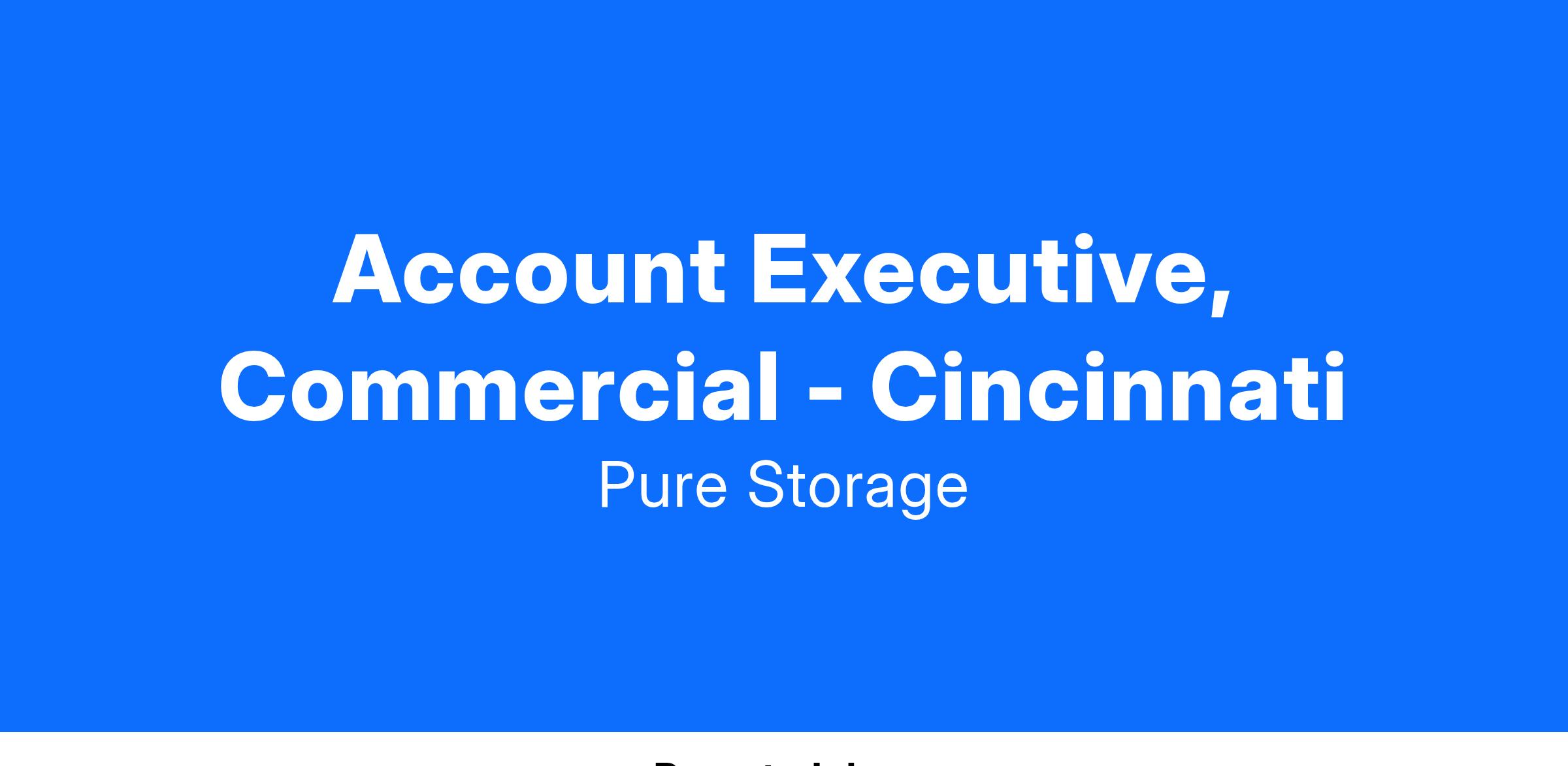 Pure Storage is seeking an Account Executive with experience selling into large Enterprise customers in Cincinnati, Ohio. This Account Executive will coordinate the overall strategy and relationship between the assigned accounts and Pure Storage. They will be responsible for team-selling efforts with other teammates and strategic partners around the globe to close business on a quarterly and annual basis. The ideal candidate will currently be selling and living in Cincinnati.