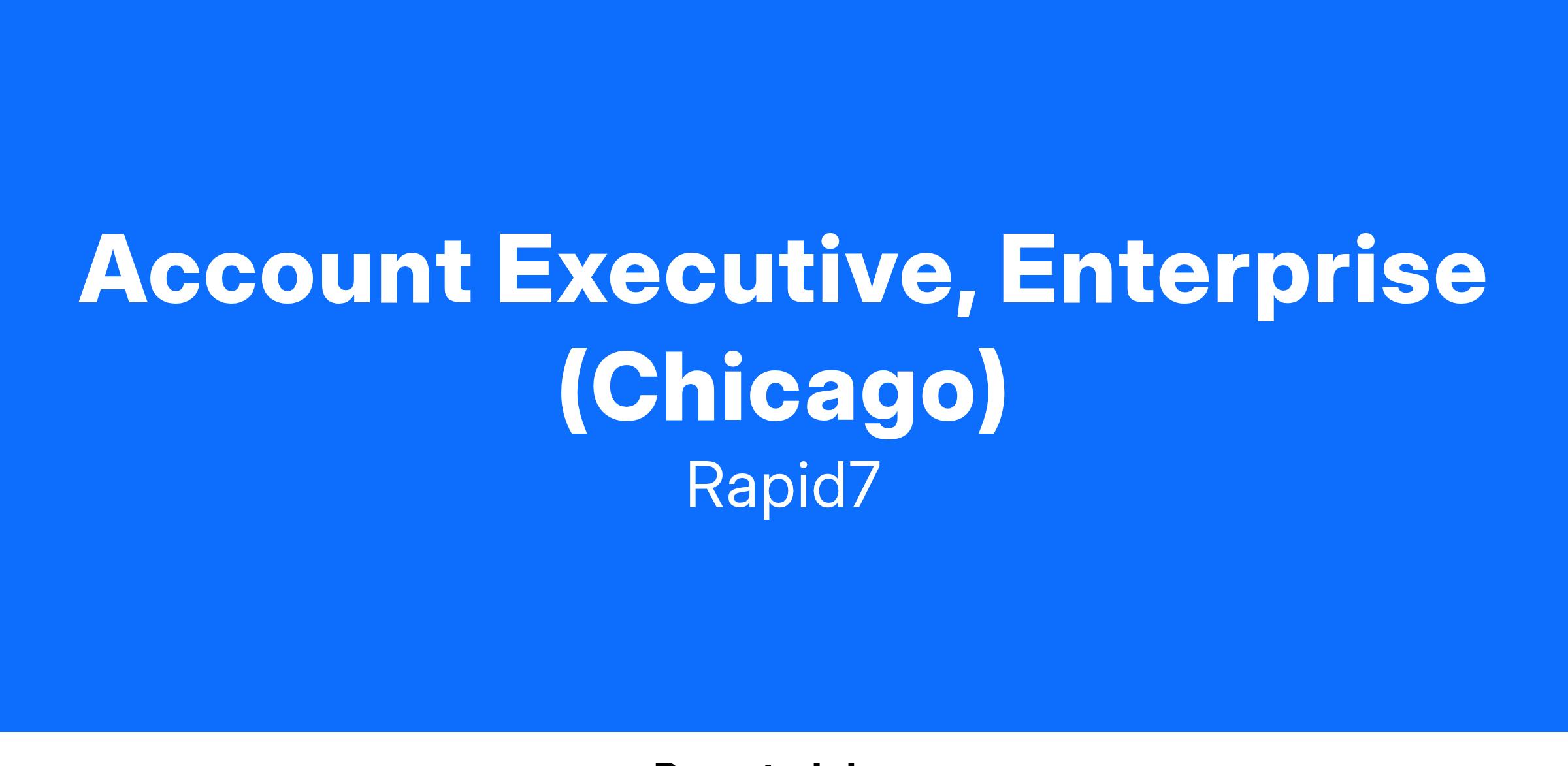 In this role, you will partner cross-functionally with internal teams to drive net-new and renewal business opportunities with enterprise accounts in IL, from initial prospecting through negotiation and contract close. This is a quota-carrying role responsible for selling solutions from our entire portfolio. Rapid7 has a history of promoting from within and our sales representatives have a number of opportunities to grow within the organization both as individual contributors and leadership roles.