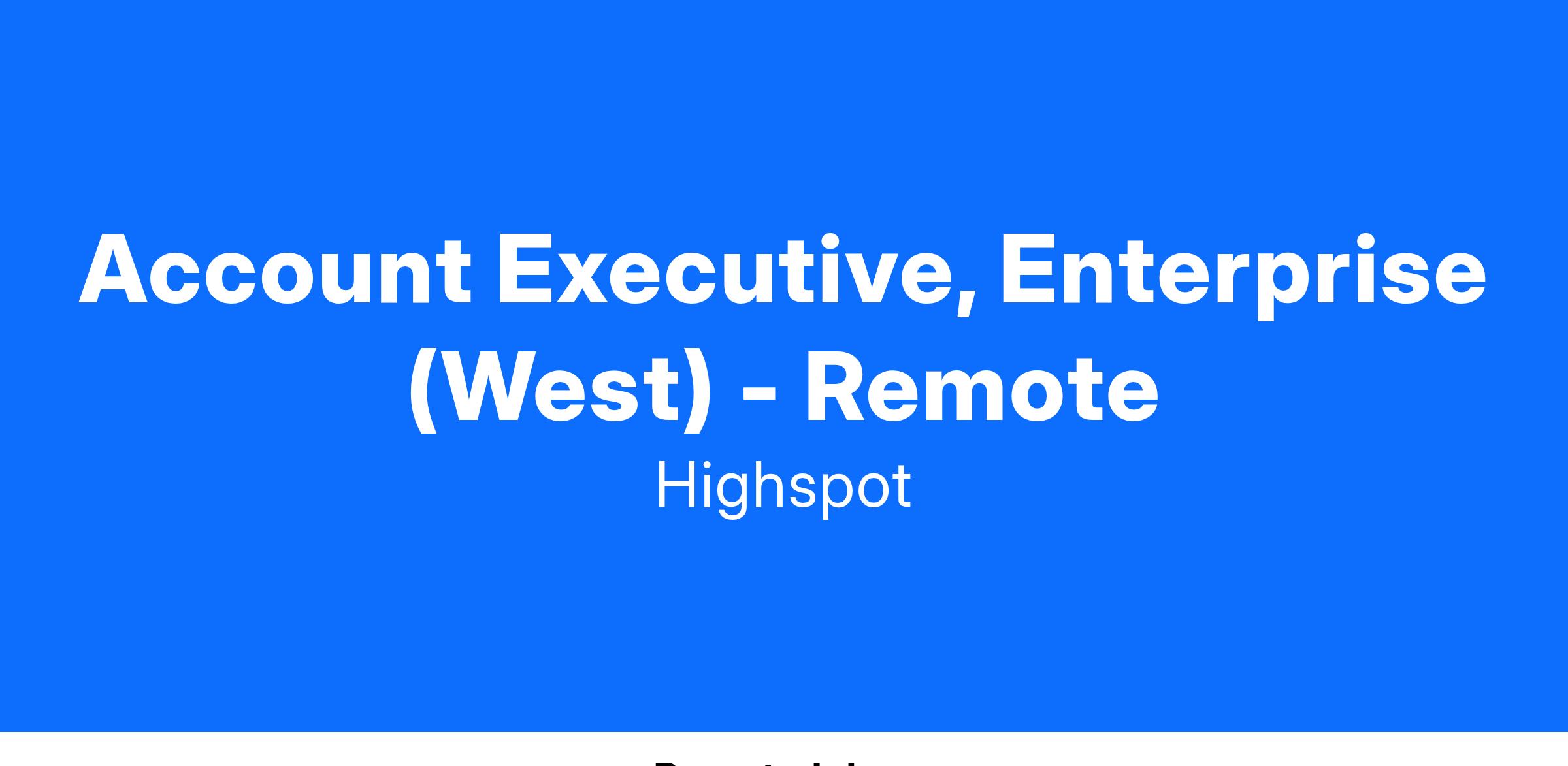 We are looking for an experienced Account Executive (AE) for our Enterprise business. The AE will develop, manage and close sales opportunities. The AE will have the opportunity to overachieve and earn uncapped commissions with accelerators based on performance. The AE must meet or exceed sales targets, manage deals, forecast accurately, and manage evaluation projects with customers and the Highspot team. The AE has experience selling to Sales and Marketing organizations. As a key member of our sales team, the AE must thrive in an environment that is highly collaborative and ever-evolving.