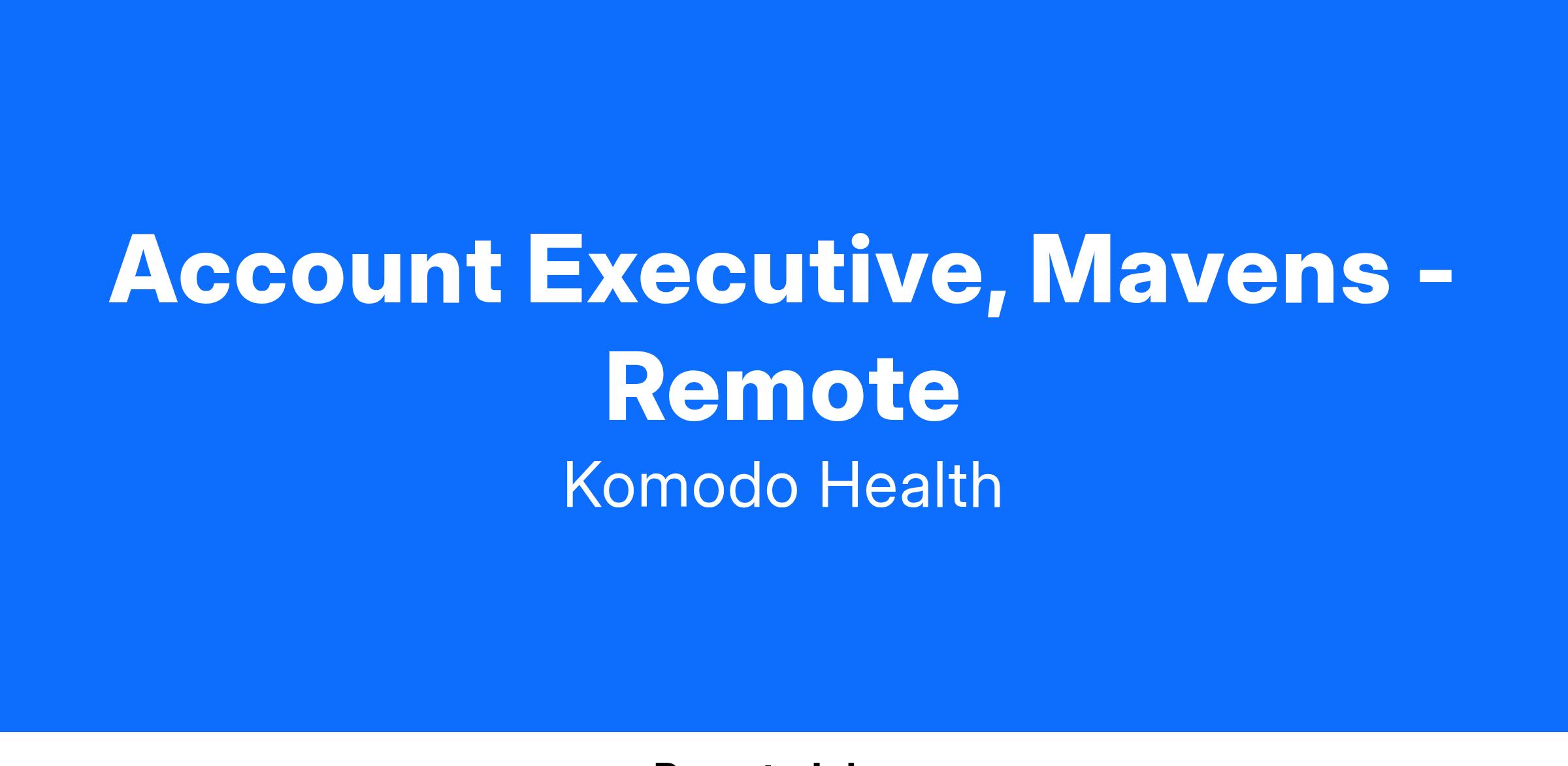Joining Mavens, a Komodo Health company as an Account Executive, you will be joining an expanding and dynamic sales team. This is an individual contributor sales role focused on new business growth.