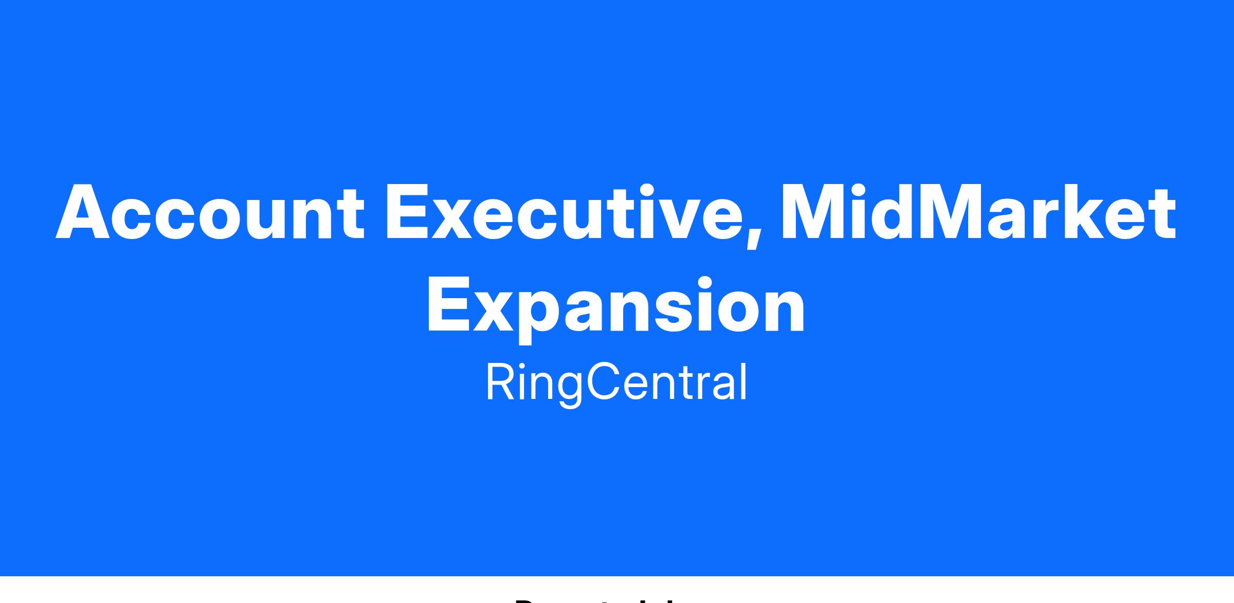 We're currently looking for: an Account Executive, Mid-Market Expansion to proactively manage a list of RingCentral’s premier existing customers acquired through direct & channel partners and tasked with cultivating and saturating business within these accounts. With ownership of 200+ current accounts your goal is to uncover and capitalize on upsell opportunities as well as provide a high level of customer service. You will leverage your B2B solution selling skills to grow your book of business and add to the thousands of businesses already using RingCentral for their communication needs.