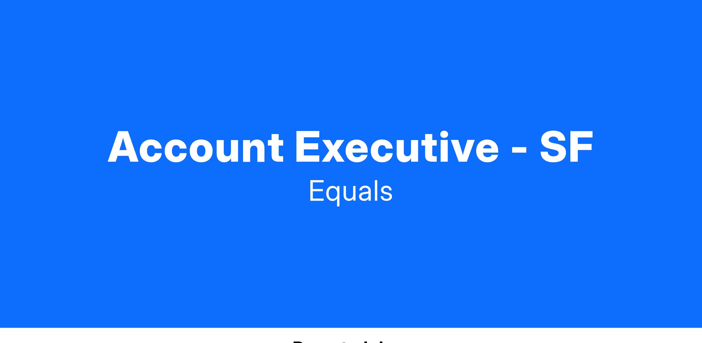 This is a unique opportunity to have immediate impact on a fast-growing startup and help shape our sales strategy. You'll be interacting with new prospects and existing customers to help them identify ways Equals can deliver critical insights to their business.
