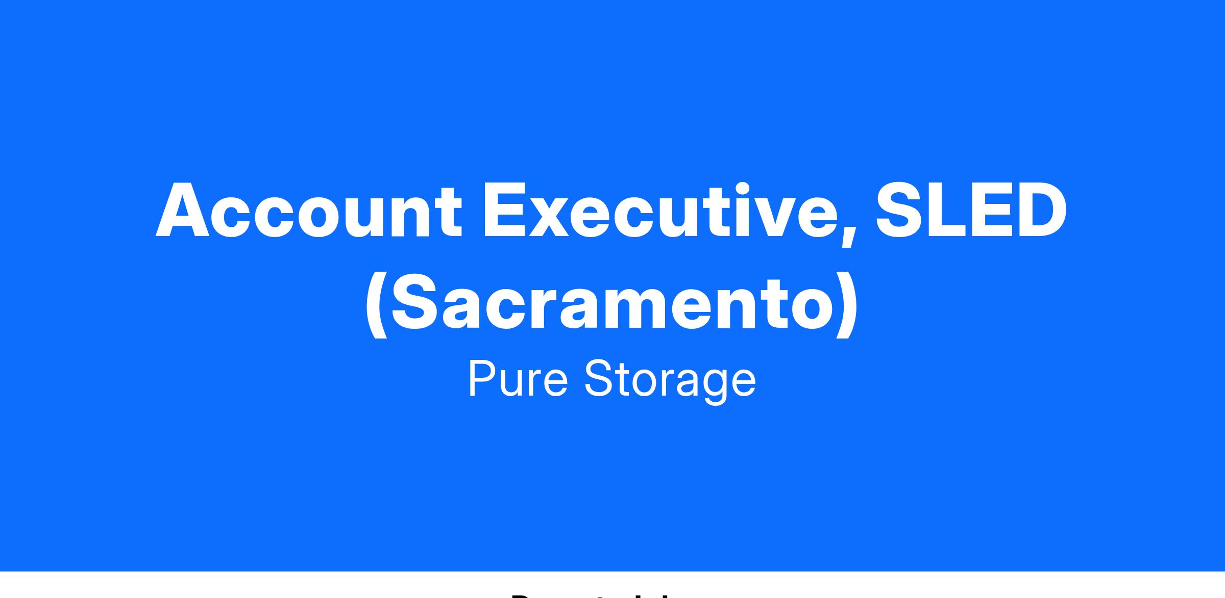 Pure Storage is creating the Data Center of the future with unparalleled innovation in data storage, management and security. We are seeking an experienced and results-oriented individual to join our dynamic sales team focused on State, Local and Education (SLED) customers. As a SLED Account Executive, you will be responsible for driving the sales of data storage solutions to SLED customers in the defined territory. This position offers a unique opportunity to contribute to growth with new customer acquisition and to play a vital role in expanding existing customer relationships.