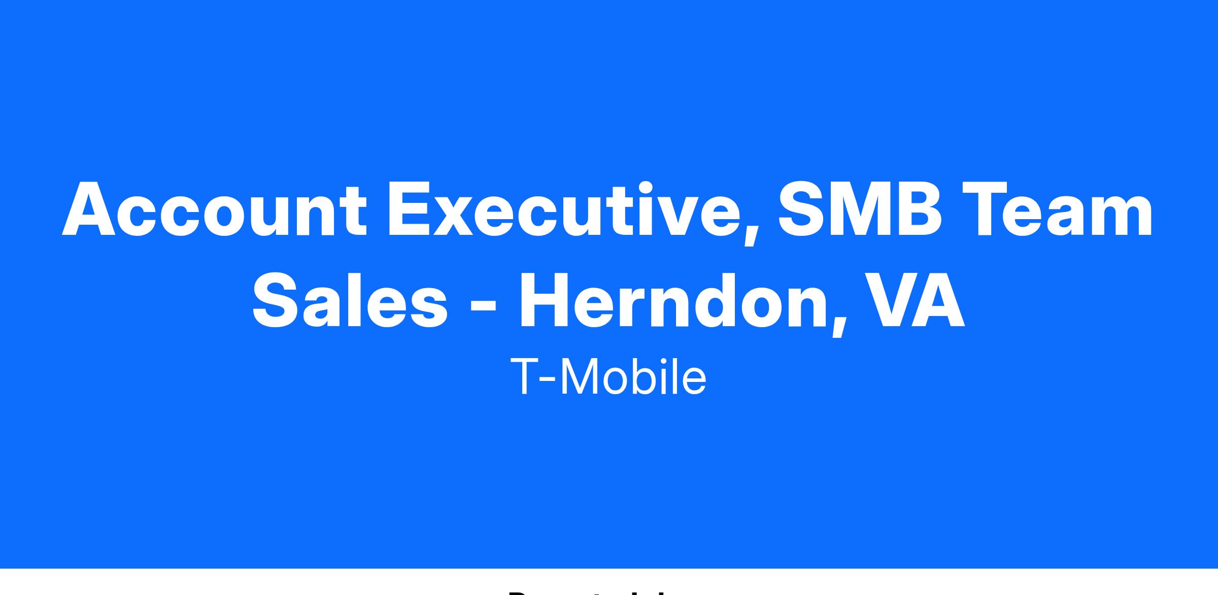 The Account Executive, SMB Team Sales role at T-Mobile is designed for ambitious, results-driven sales professionals who are passionate about building stellar customer relationships and bringing T-Mobile's unmatched products and services to underserved markets.