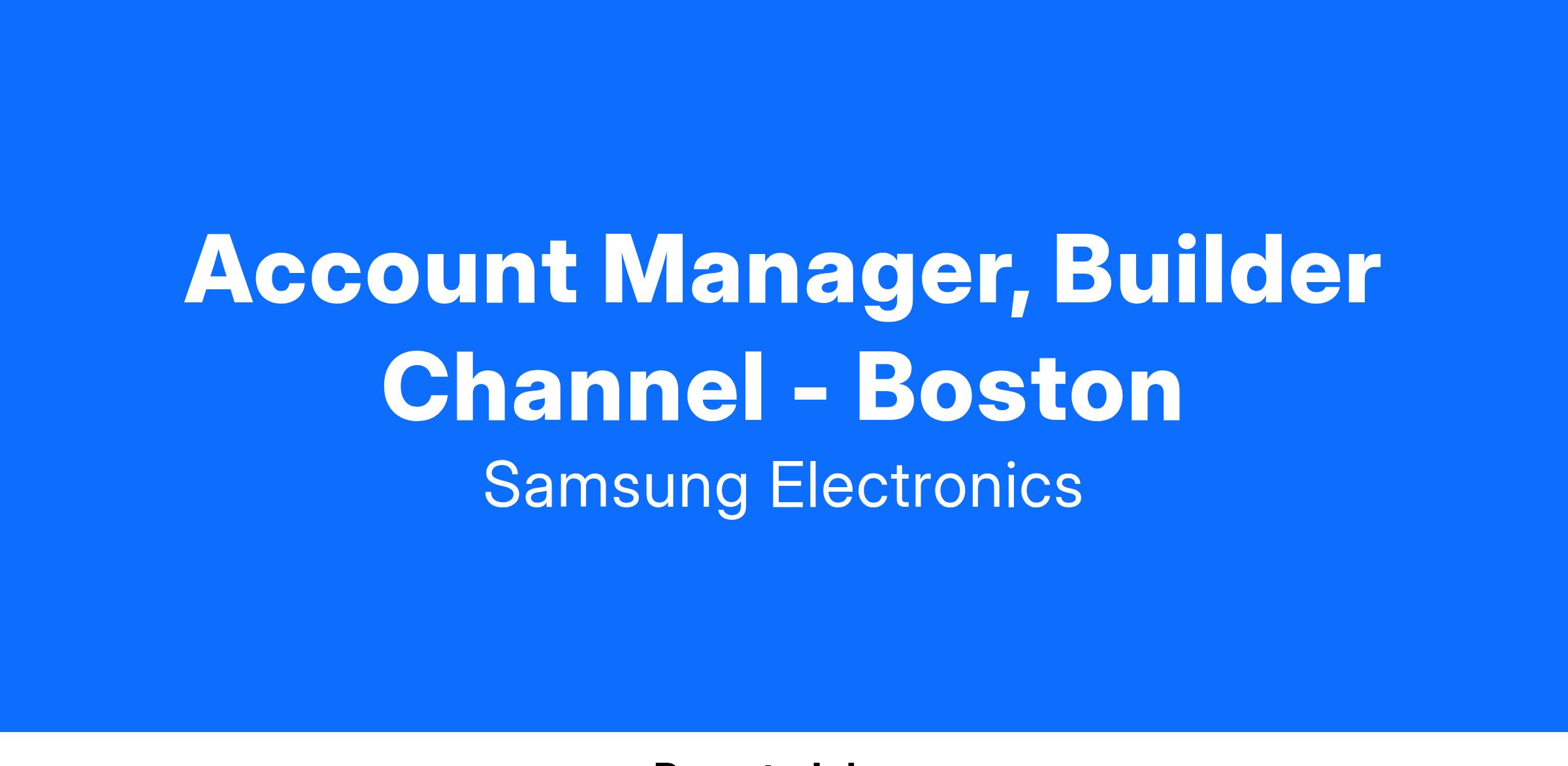 Account Manager, Builder Channel - Boston