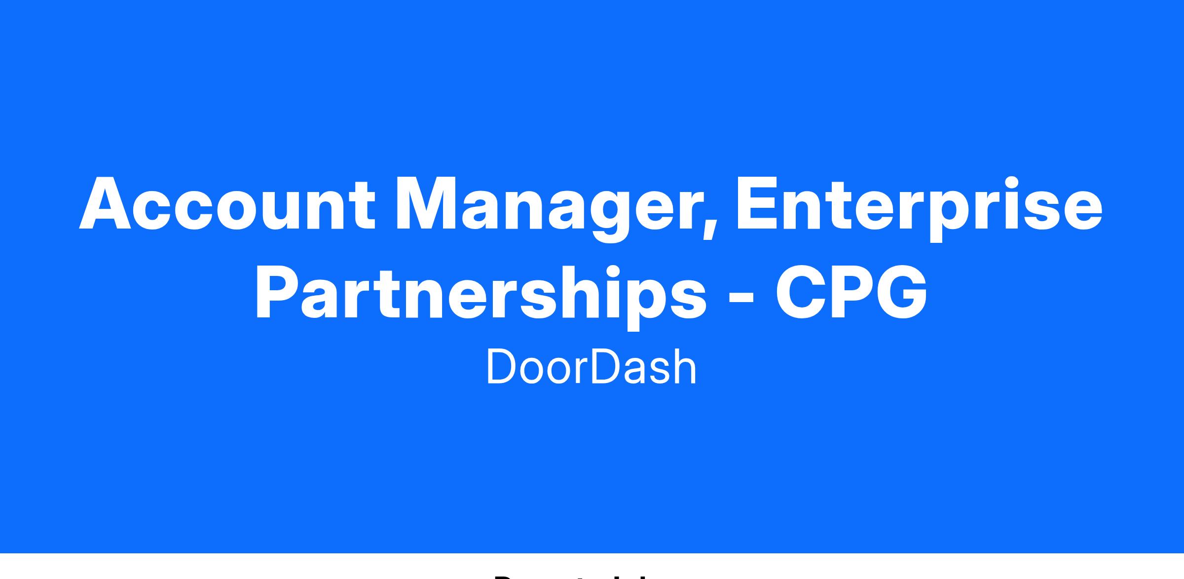 The CPG Partnerships Account Manager will support the company's efforts in adopting and partnering with major CPGs across our grocery, convenience, restaurant and retail markets. Digital grocery and convenience is expanding, and DoorDash is making meaningful strides to become a leader in this sector. You will build partnerships that create tangible value for both DoorDash and advertisers. In this role, you will manage the ads strategy across a focused portfolio of accounts, drive adoption of our growing ads and promotions offering, and support the team in campaign execution and performance. You will also work cross-functionally with account executives, marketing, analytics, and product to innovate on our future approach and solutions. You will report into a CPG Industry Manager in our Enterprise Sales & Business Development organization.