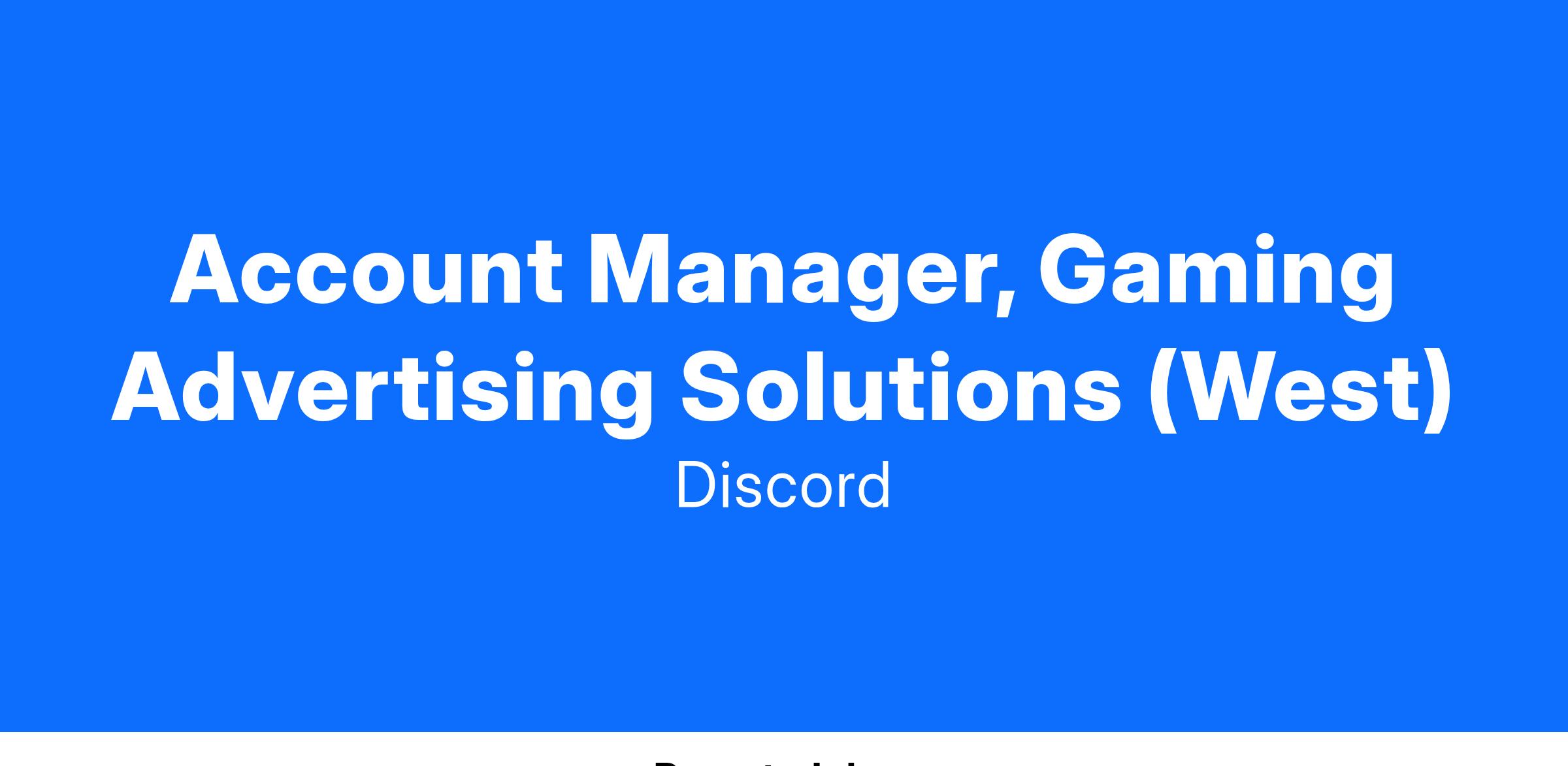 You will harness your prior experience in advertising/media/marketing spaces and bring a combination of relationship building, industry relationships, product insights, and an ability to win, optimize and expand a recurring book of business with clients. You will report into the Director of Sales, Gaming Advertising Solutions and support the West region. This hire must be based on the West Coast, however, there is no in-office requirement