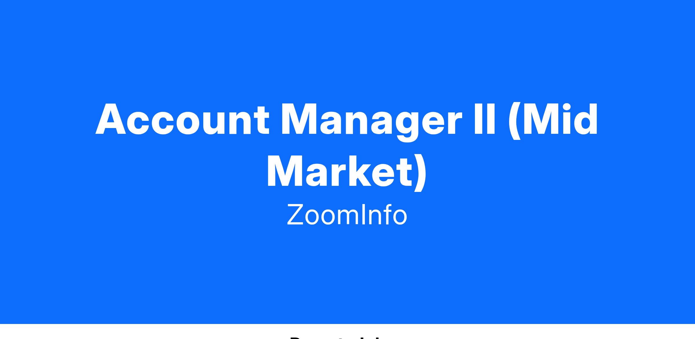 Are you ready to elevate your career as a Mid-Market Account Manager with ZoomInfo? Weβre looking for a passionate individual to join our team and take on the thrilling role of upselling and retaining a portfolio of Mid-Market accounts (companies with 100-1,000 employee headcount). If you're energized by the prospect of driving business growth, exceeding goals, and being an integral part of a high-performing team, this is the opportunity you've been waiting for!