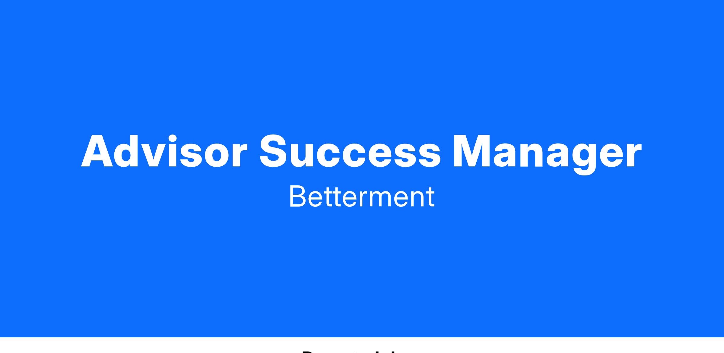Betterment Advisor Solutions provides a cutting-edge platform for financial advisors seeking innovative ways to enhance their wealth management services. We are currently looking for an Advisor Success Manager to build and nurture relationships with advisors using the Betterment platform. In this role, you will partner directly with advisors to ensure seamless onboarding, optimize platform usage, and support the growth of their wealth management practices.