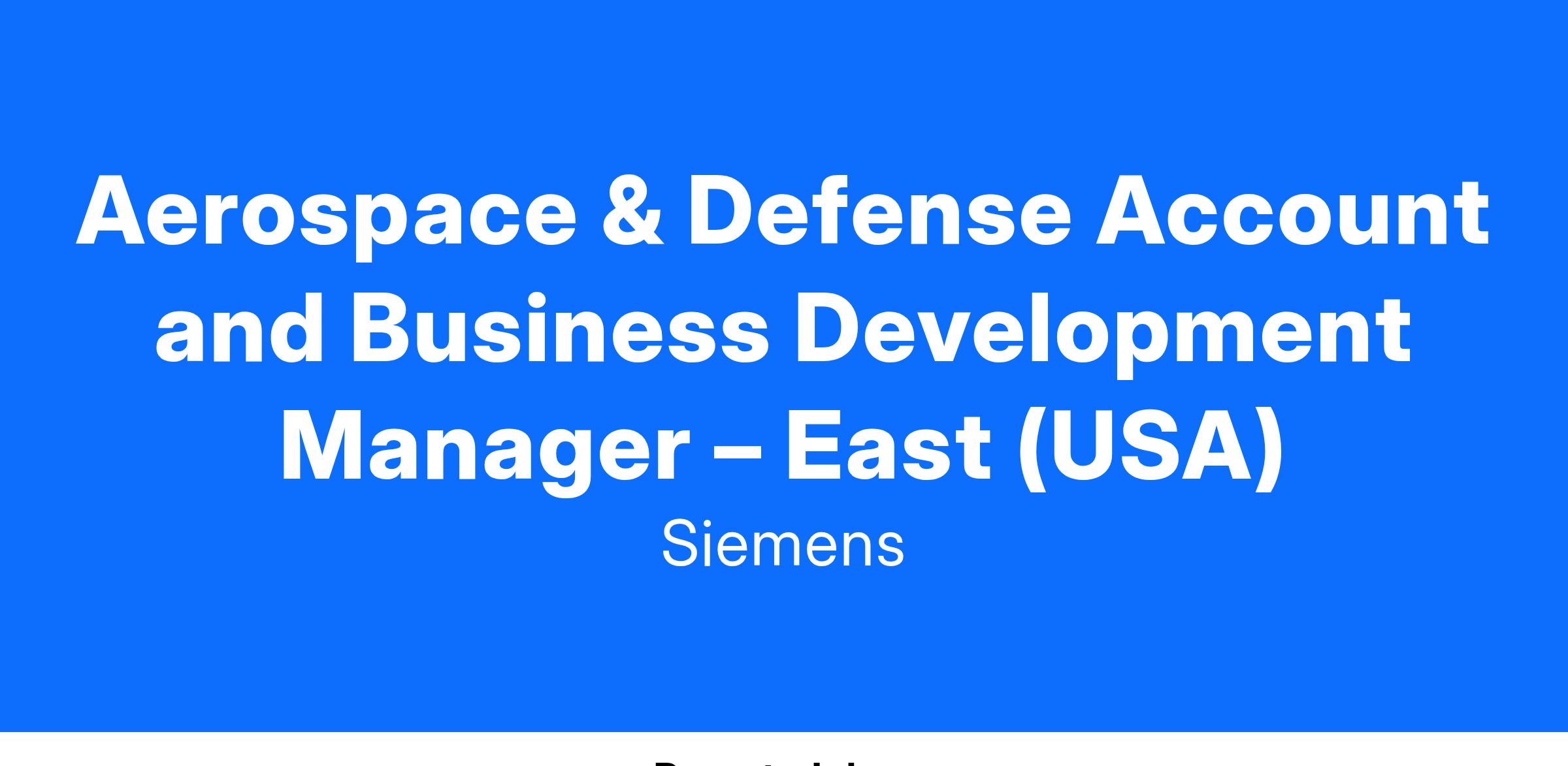 The Siemens Aerospace & Defense team is looking for a dynamic and energetic professional to manage accounts and spearhead strategic business development efforts within the Aerospace & Defense industry across the US, with a special focus on the East region. As part of the global Siemens Aerospace & Defense Vertical Organization, the Aerospace & Defense Account and Business Development Manager will implement the global vertical strategy in the US and coordinate national and international activities with the related vertical ecosystem and accounts. The successful candidate will be able to pair knowledge of the Aerospace & Defense Market with an advanced automation and digitalization centric portfolio of solutions, to drive sales, to establish customer preference, and to win specifications for Siemens in Aerospace & Defense named accounts in the USA.
