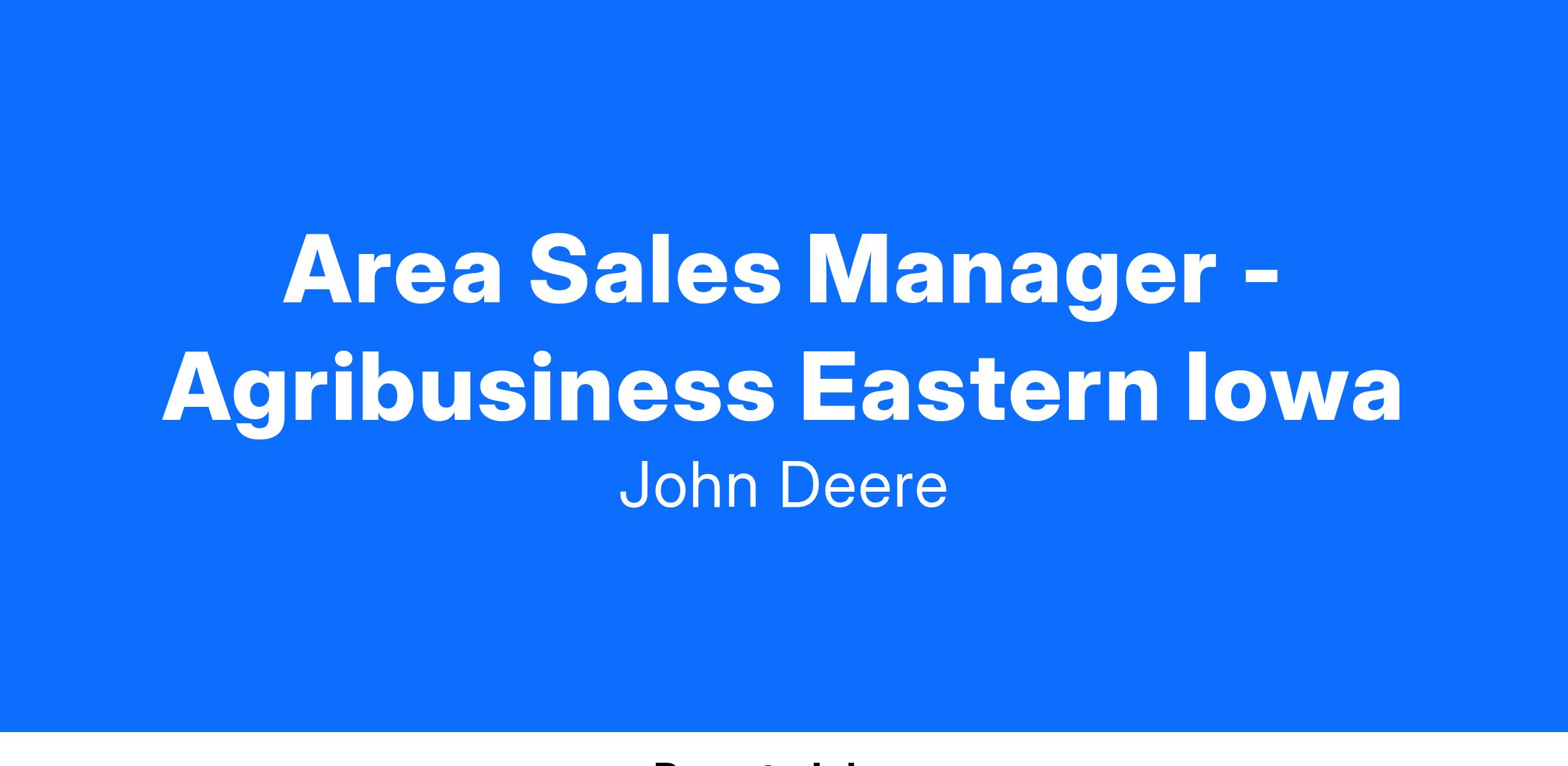 Title: Area Sales Manager - Agribusiness Eastern Iowa - 111162