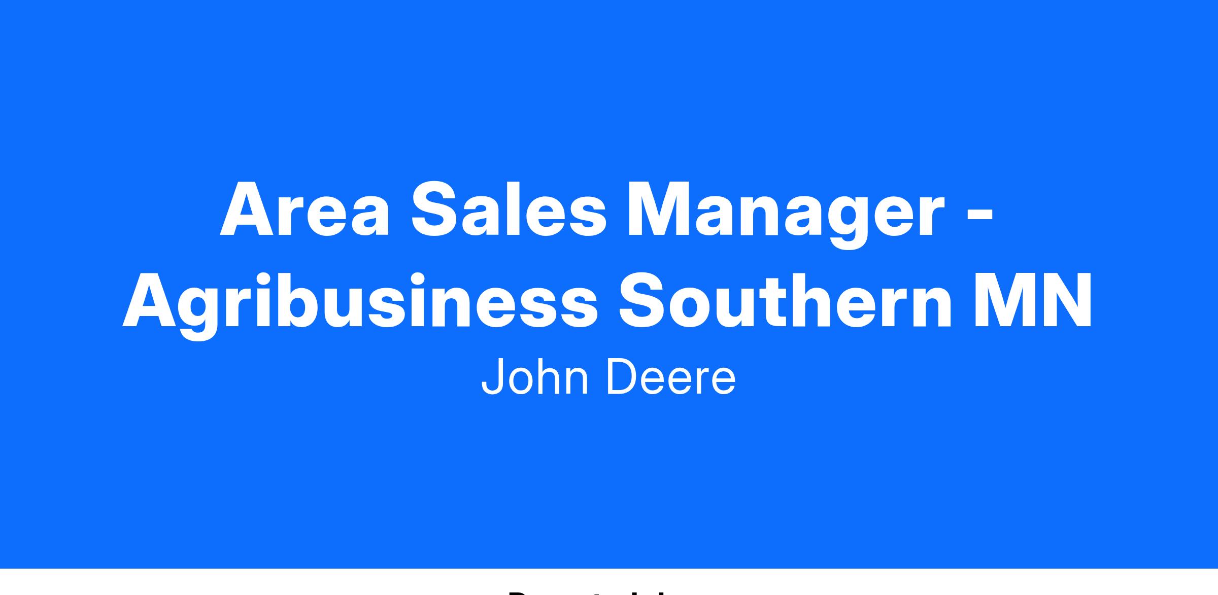Title: Area Sales Manager - Agribusiness Southern MN - 111091