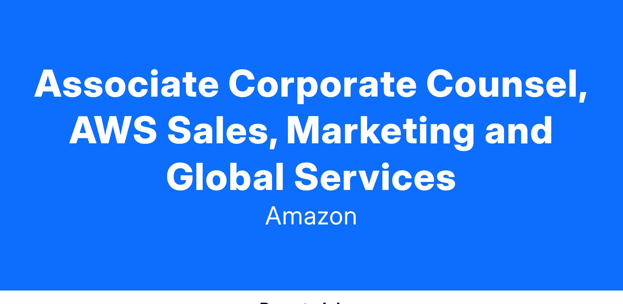 This Associate Corporate Counsel will serve as a trusted advisor to business leaders and will support partner, business development, and specialist sales teams within AWS Sales, Marketing, and Global Services. This role will structure, draft, and negotiate complex, impactful commercial agreements; guide and counsel internal business partners on a variety of complex legal issues; and drive process-oriented improvements.