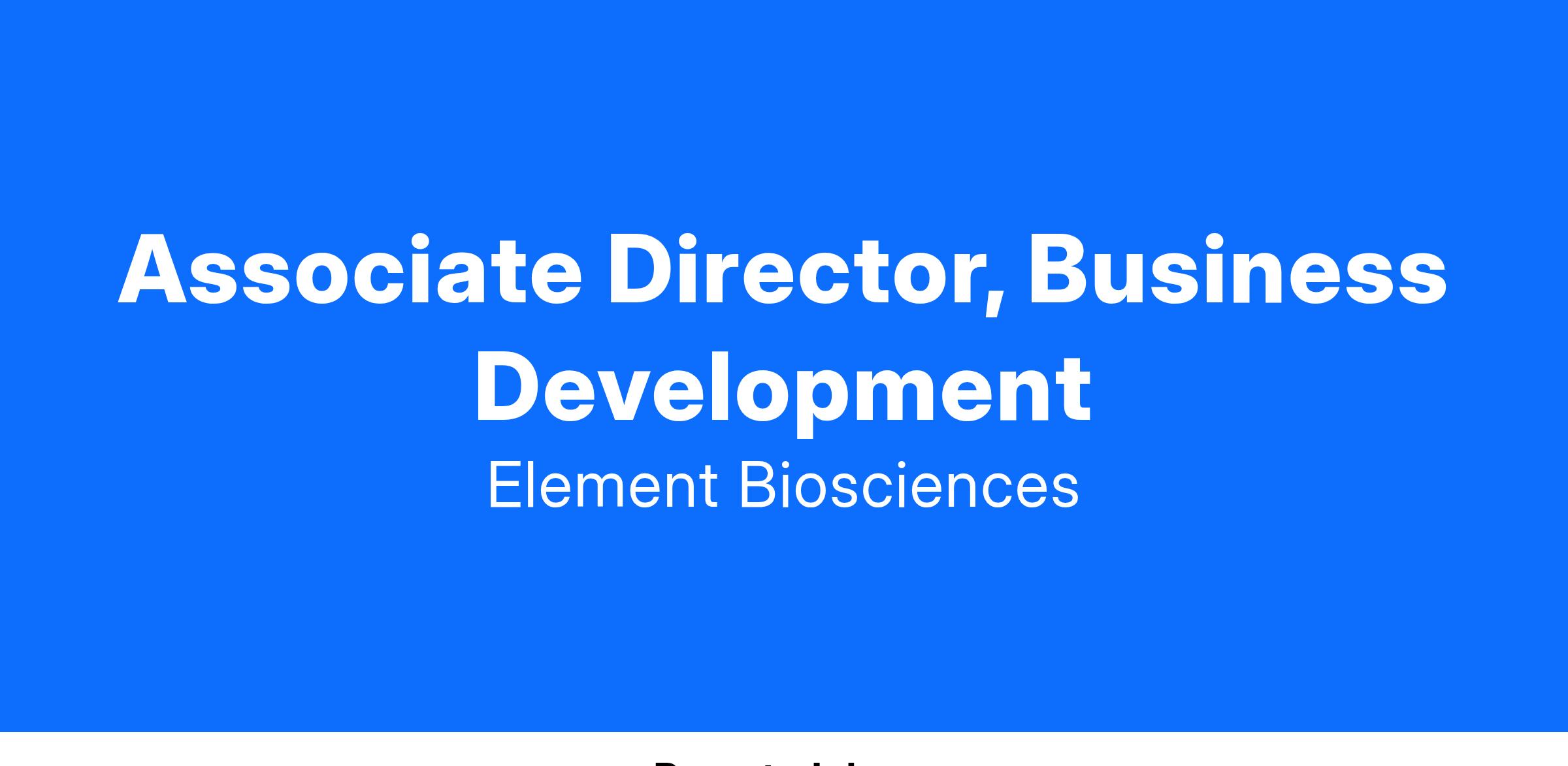 We are seeking an experienced Associate Director, Business Development who will be responsible for supporting the development and execution of business development strategies to expand the Element's presence and market share in the genomics and multi-omics space. This role involves overseeing the day-to-day operational activities, leading implementation teams, and ensuring alignment with the company's strategic objectives. This role will report to SVP, Corporate & Business Development and will be an on-site San Diego based role.