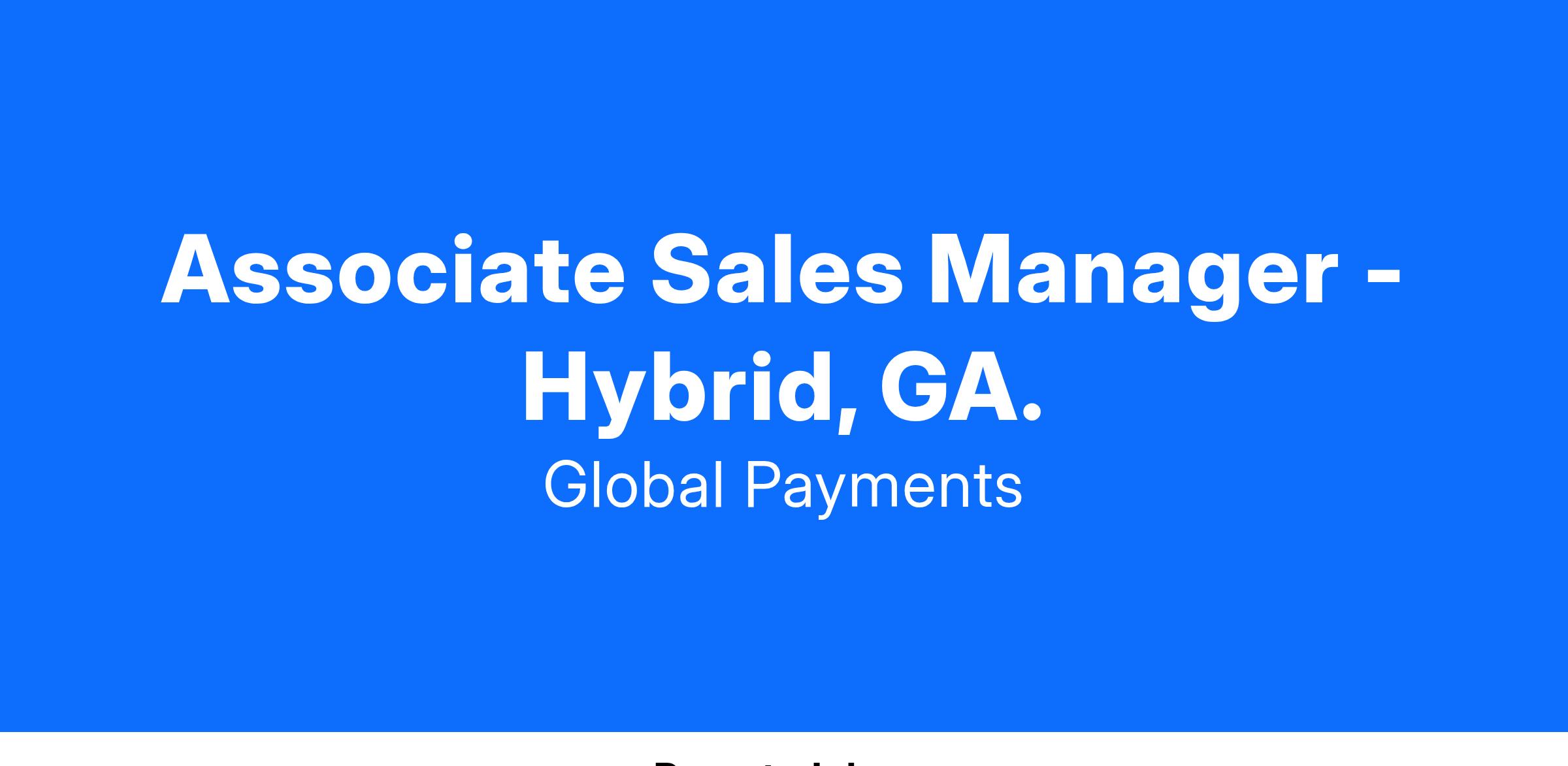 Global Payments Inc. is an equal opportunity employer. Global Payments provides equal employment opportunities to all employees and applicants for employment without regard to race, color, religion, sex (including pregnancy), national origin, ancestry, age, marital status, sexual orientation, gender identity or expression, disability, veteran status, genetic information or any other basis protected by law. If you wish to request reasonable accommodations related to applying for employment or provide feedback about the accessibility of this website, please contact jobs@globalpay.com.