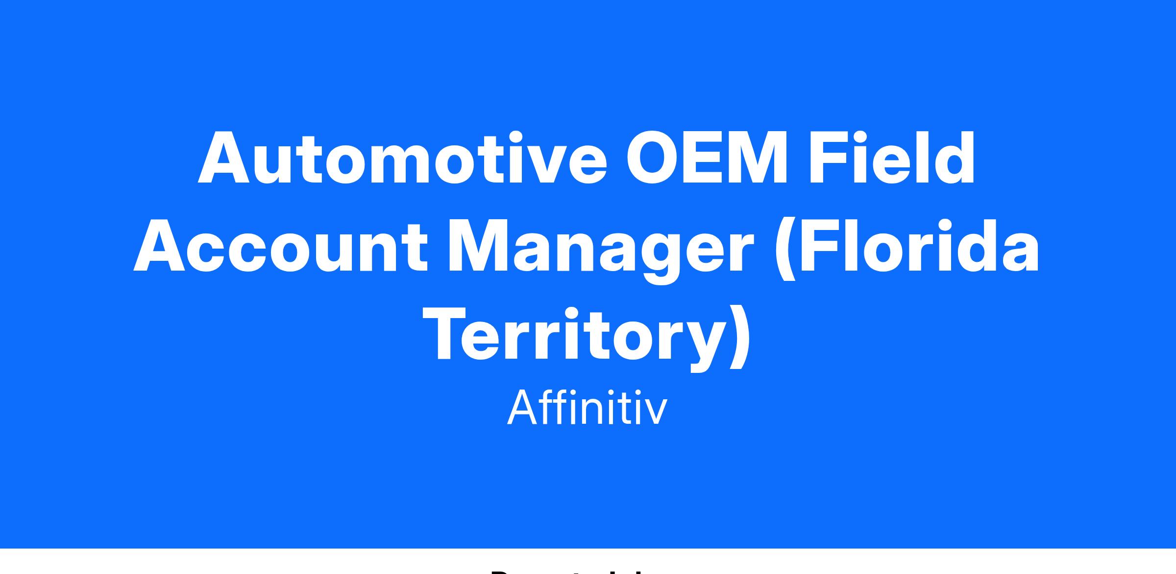 The Subaru Care Connect Account Manager will travel within the assigned territory to the designated area dealerships to ensure program understanding and usage of an exclusive marketing software platform in partnership with Subaru for their automotive dealership network. Candidate MUST be located in Florida. The individual filling this position is expected to both service and support the dealership's participation of this program, as well as sell participating ongoing services. They will develop a core relationship that facilitates an ongoing business relationship with the Subaru field force and the territory dealerships.