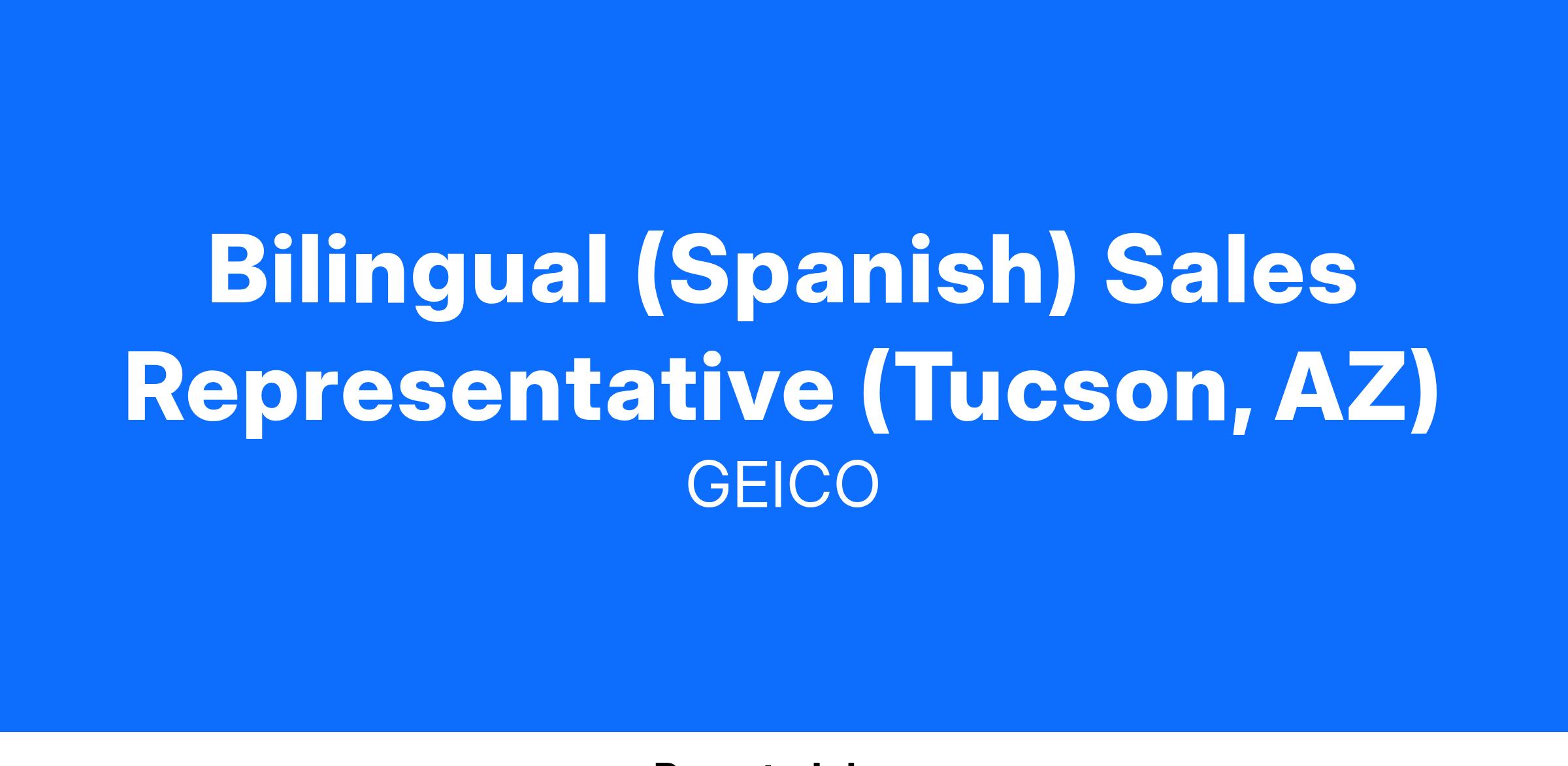 At GEICO, our associates are the heart of our company. We’re looking for Bilingual Sales Representatives for our Tucson, AZ office who are driven, solution-oriented, and ready to contribute to our company’s success. We’re seeking outstanding associates who want to kickstart a fulfilling career with one of the most innovative auto insurers in the U.S.