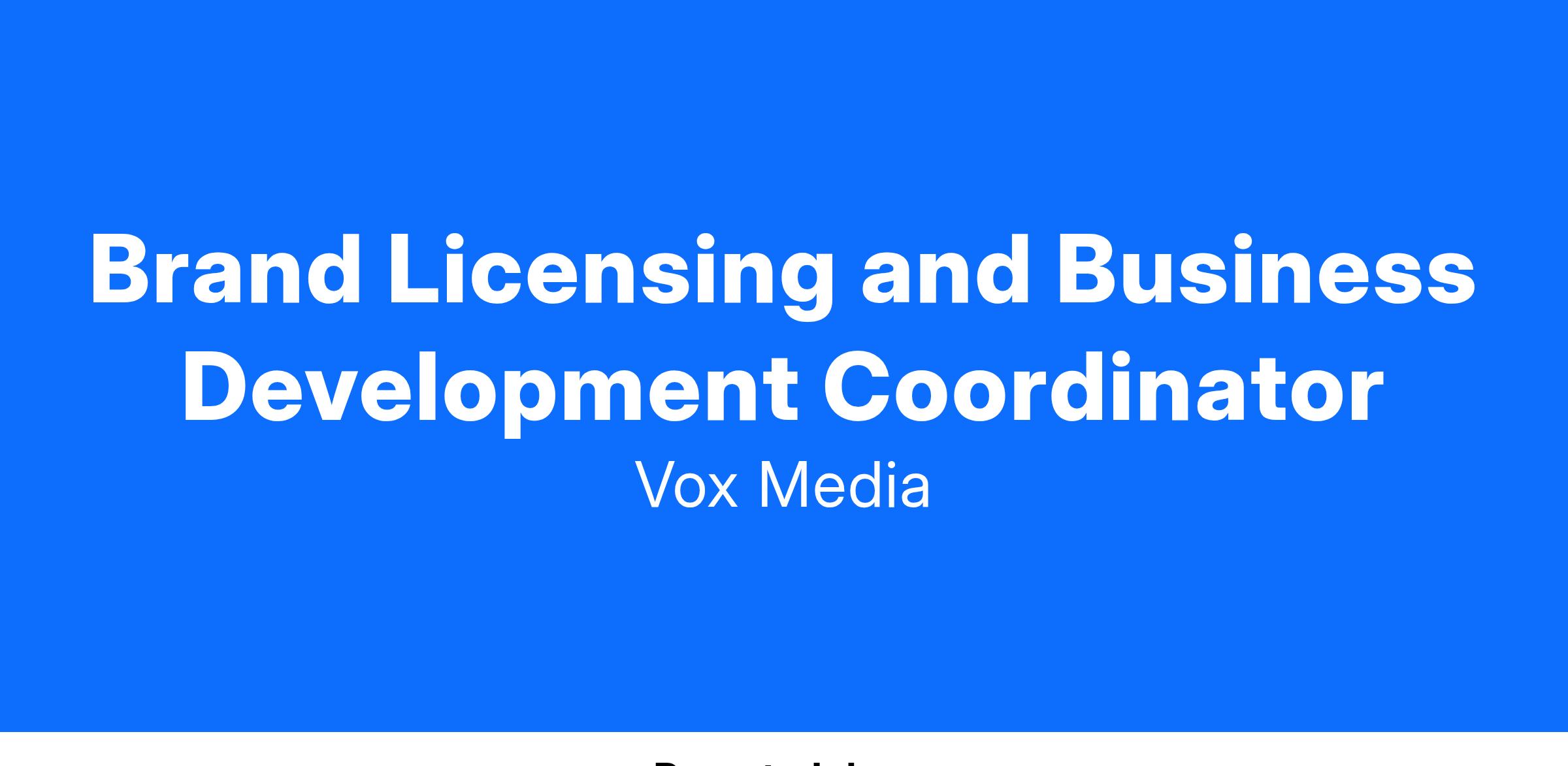 Brand Licensing and Business Development are parts of Vox Media, the leading modern media company. We guide our audience from discovery to obsession. We inspire essential conversations about what’s now, what’s next, and what’s possible.
