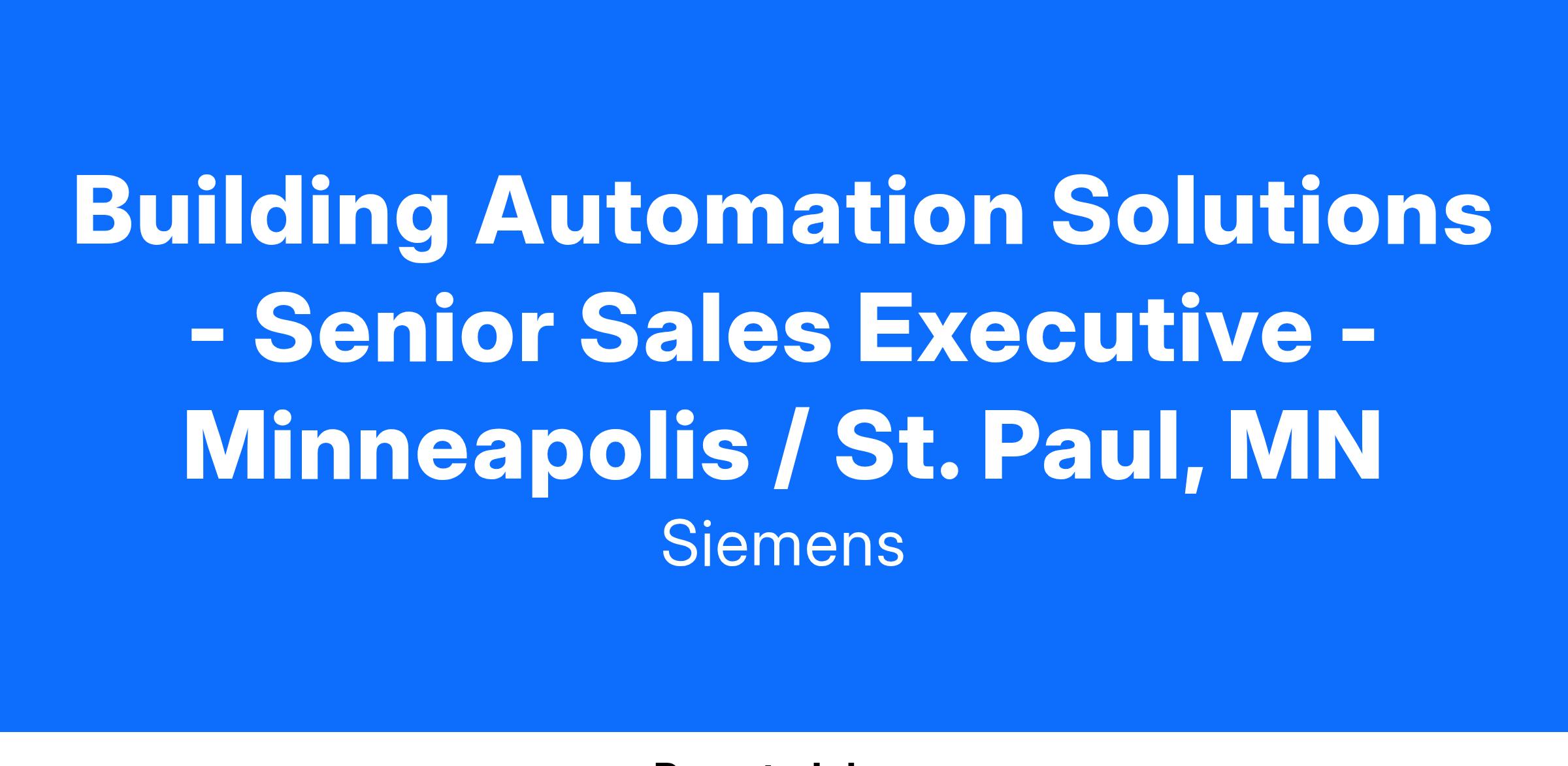 Building Automation Solutions Senior Sales Executive
