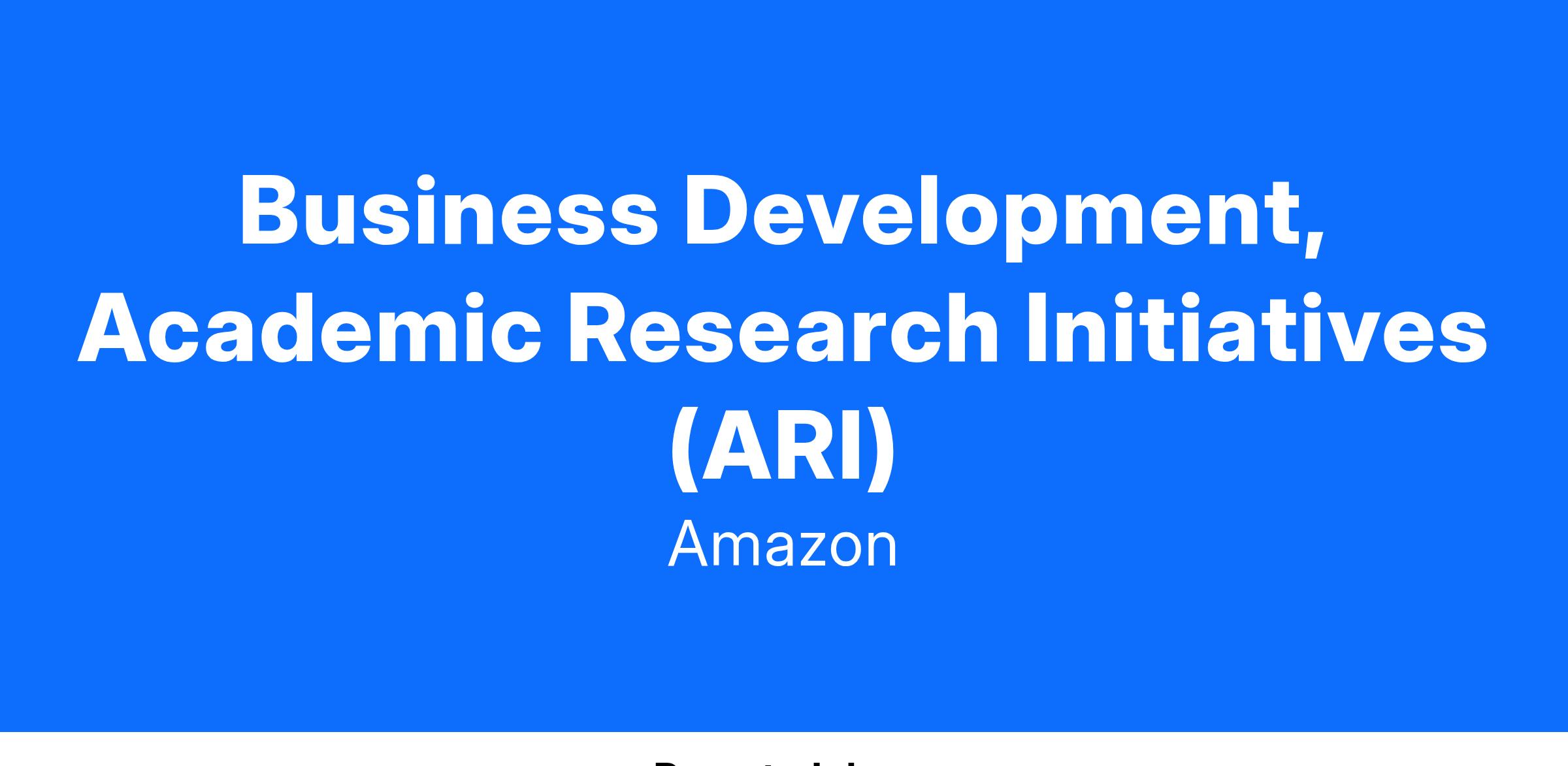 Amazon Research Initiatives (ARI) team is a newly formed team with the mission to make Amazon a place where every transformative idea from academia is efficiently discovered, evaluated, and disseminated to accelerate innovation on behalf of our customers. ARI is an academic research investment management team that sources research proposals from top global universities, matches promising ideas with Amazon business funders, manages research portfolios, diffuses learnings across Amazon to maximize learning impact, and disrupts once salient technology trends emerge. We provide guardrails to avoid investment waste and connect leaders with similar research interests to amplify their work.