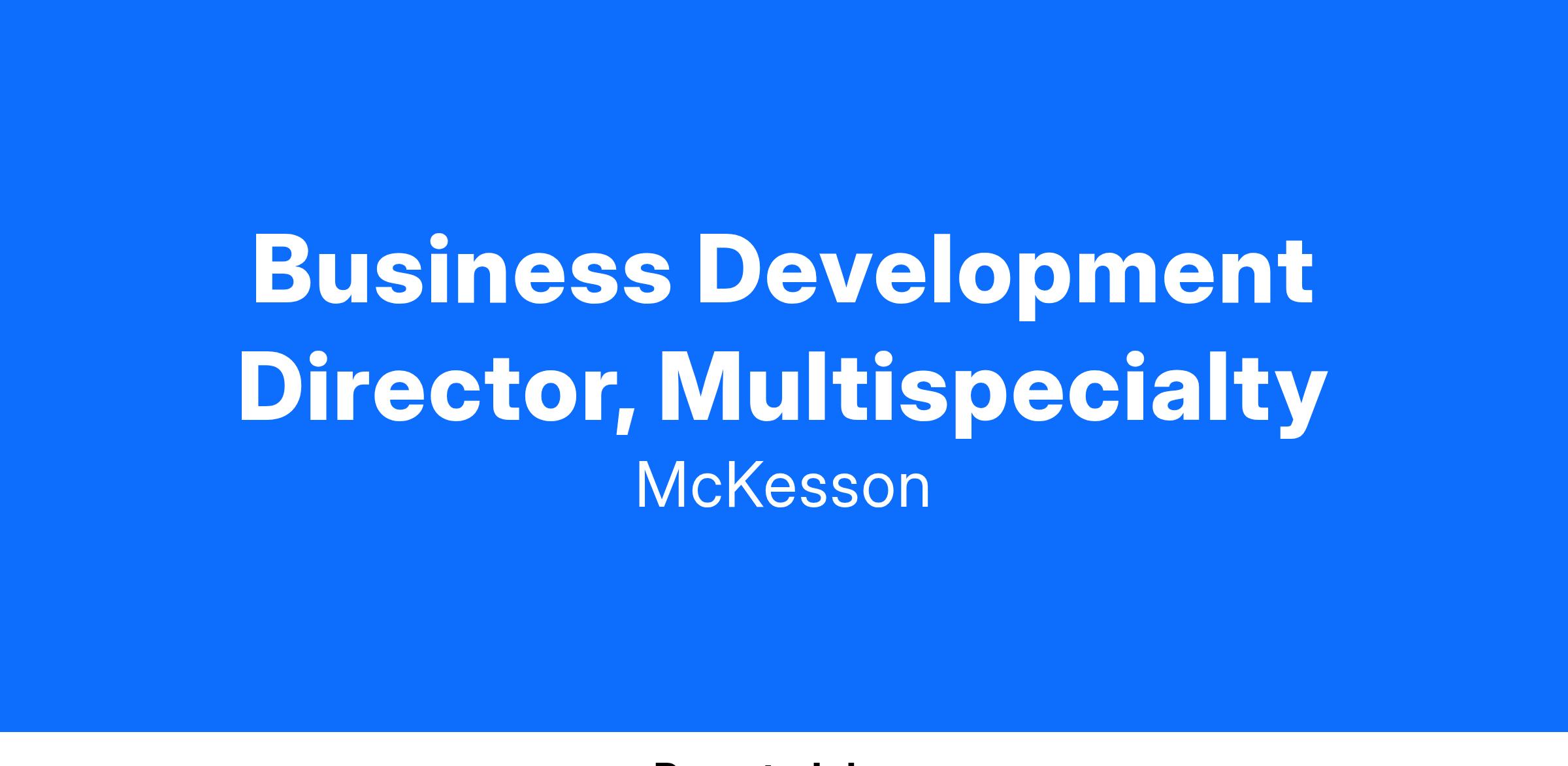 The Business Development Director (BDD), Multispecialty will focus on acquiring new drug distribution business from community-based multispecialty practices. This is a 100% hunter role, requiring the BDD to develop and execute strategic sales plans to prospect, engage, and convert competitors' clients. The BDD will target multispecialty practices and work to displace competitors by uncovering cold prospect needs and matching them to McKesson’s superior value proposition.