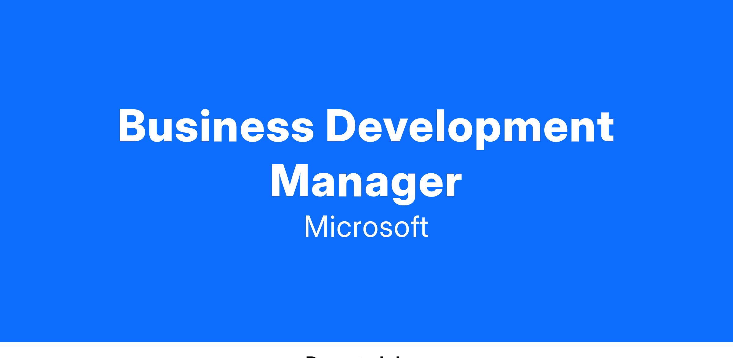 We are seeking a Business Development Manager to join the team driving major partnerships and strategic initiatives focused on Microsoft 365 and Microsoft 365 Copilot to transform the way organizations work and transform with AI