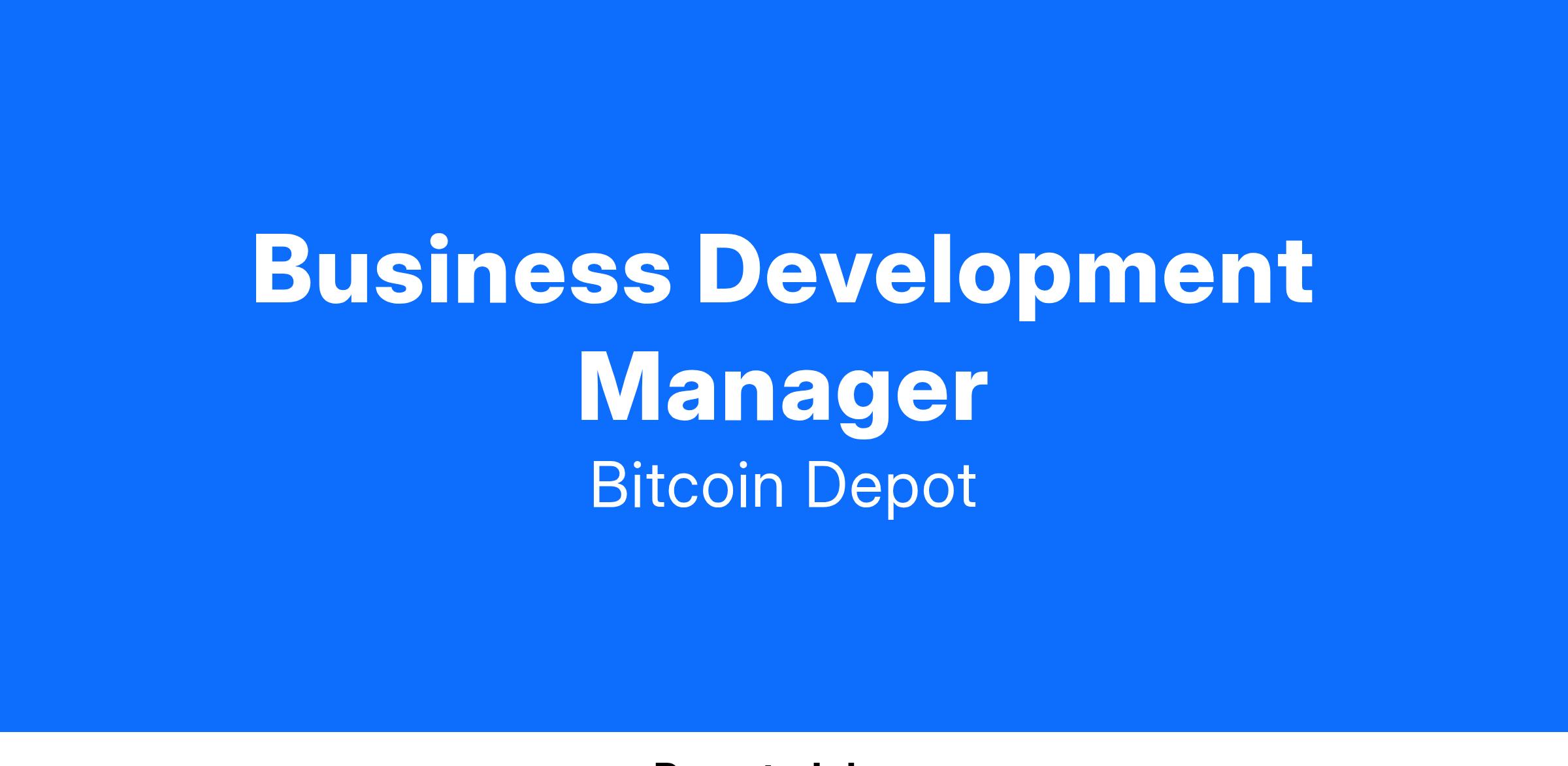 Bitcoin Depot is seeking a Business Development Manager to join our team. The role will be responsible for generating leads and involves starting relationships with people in our target market. Your work at the beginning stage of these relationships helps us to find and serve new customers. The majority of leads will be cold leads and cold calling/emailing will be required.Β