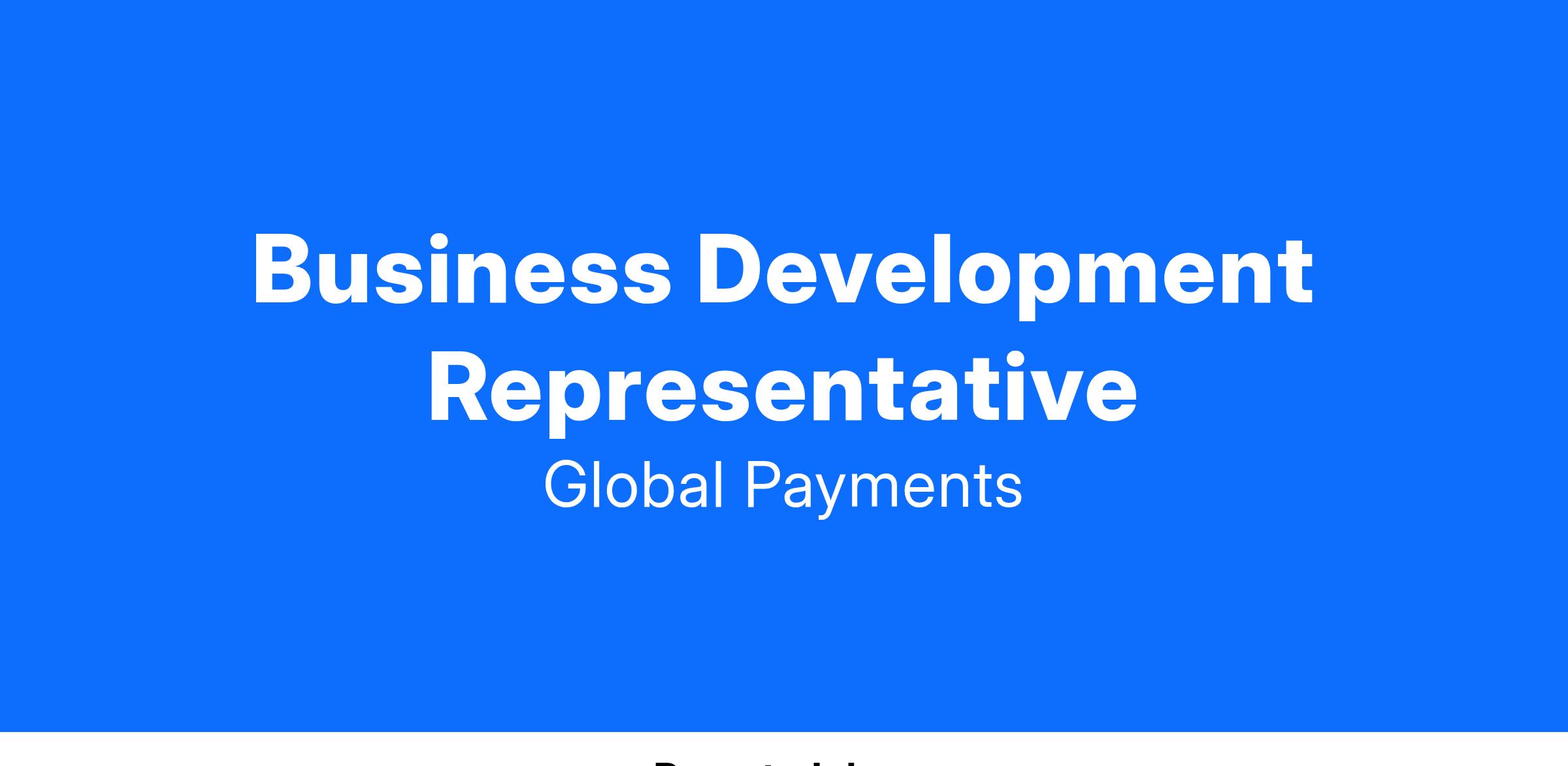 Every day, Global Payments makes it possible for millions of people to move money between buyers and sellers using our payments solutions for credit, debit, prepaid and merchant services. Our worldwide team helps over 3 million companies, more than 1,300 financial institutions and over 600 million cardholders grow with confidence and achieve amazing results. We are driven by our passion for success and we are proud to deliver best-in-class payment technology and software solutions. Join our dynamic team and make your mark on the payments technology landscape of tomorrow.
