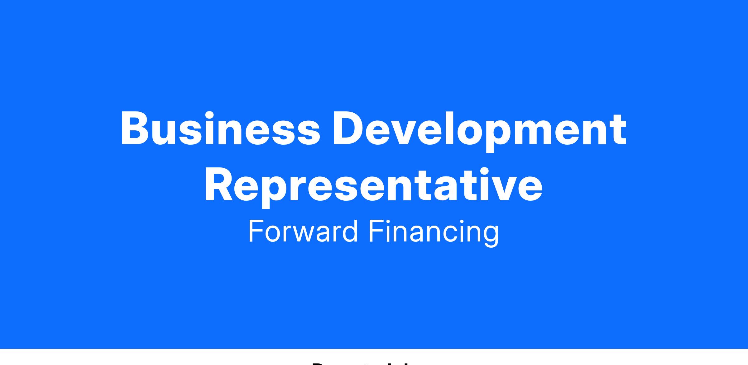 As a Business Development Representative you will be hands-on to develop relationships with prospective clients and maintain effective relationships with existing customers. You will be responsible for generating new business through outbound calls, emails, and other resources. This will require learning about our industry, clients, other internal processes, and culture at Forward Financing. You will report to the Customer Engagement Manager in our Boston office while collaborating daily with Sales, Marketing, Operations and other leaders across Forward Financing both in our Santiago and Boston office, providing gold standard support.