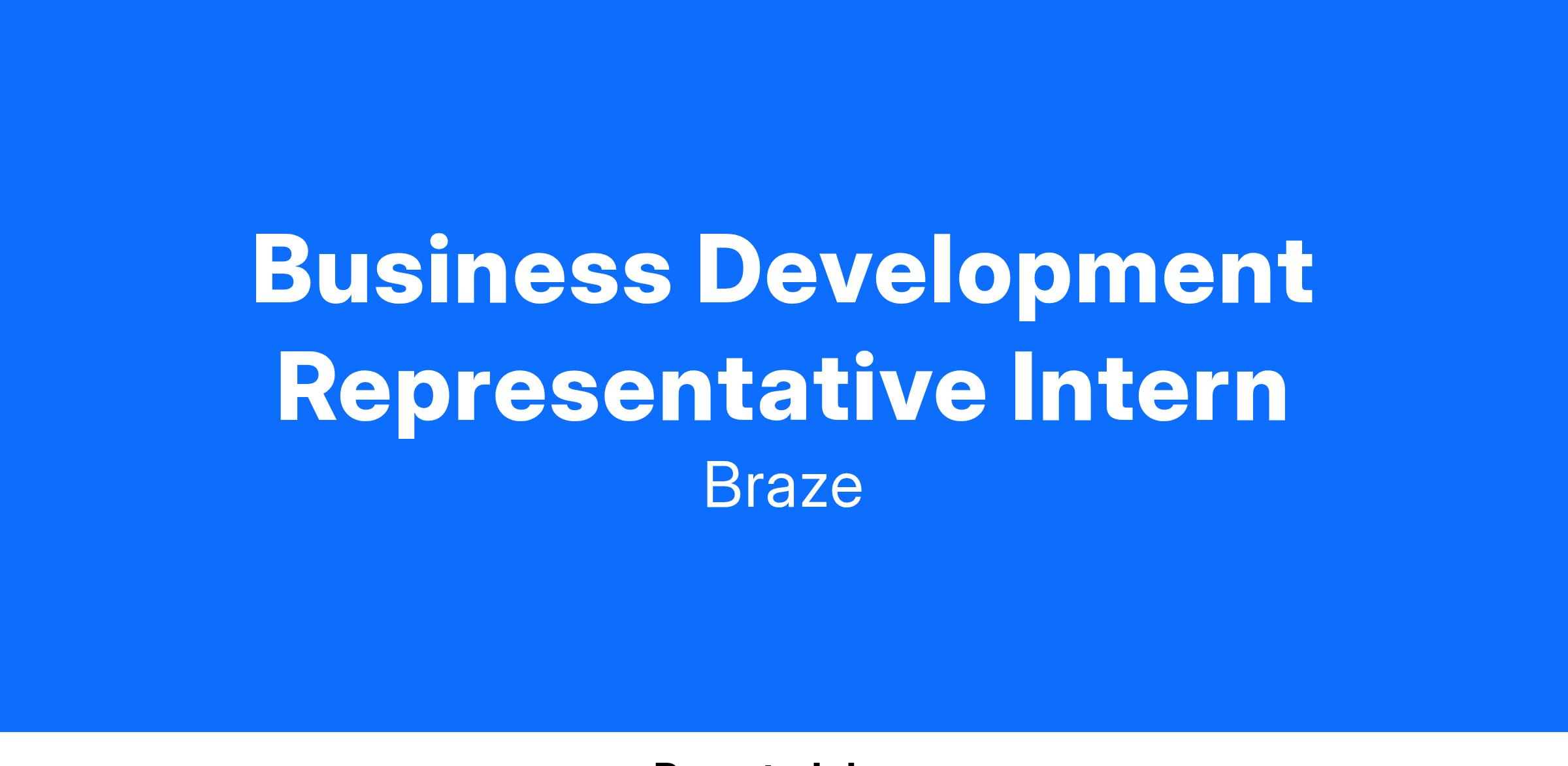 Business Development Interns (BDIs) at Braze grow into curious and proactive commercial players. Past interns have gone on to secure full time Business Development Representative (BDR) roles, leveraged their Braze experience for dissertations, and have chosen further education options like MA/MBA.
