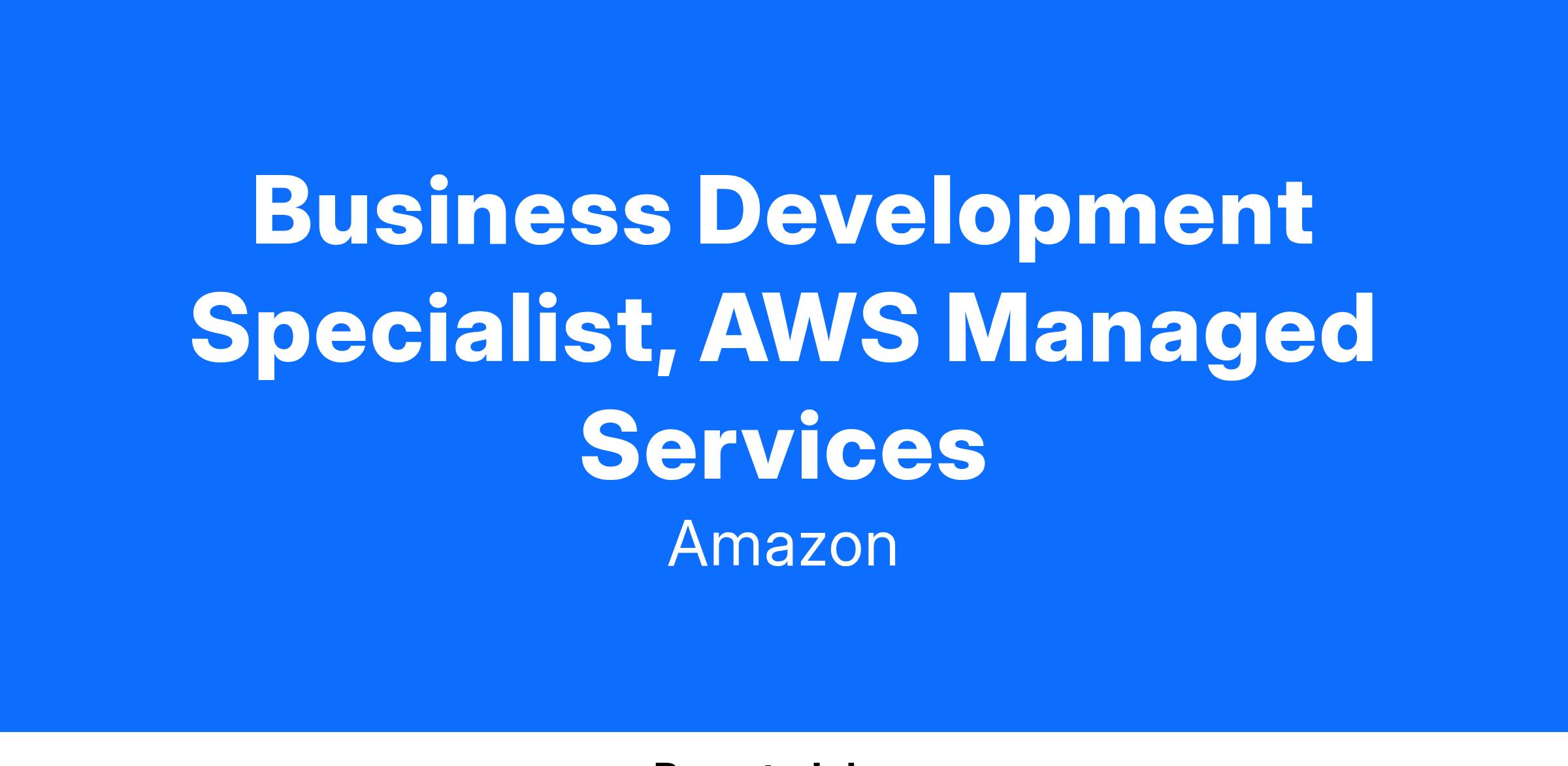 - Exhibits proactive ability and is very astute in setting customer discussions via AWS field and partner teams