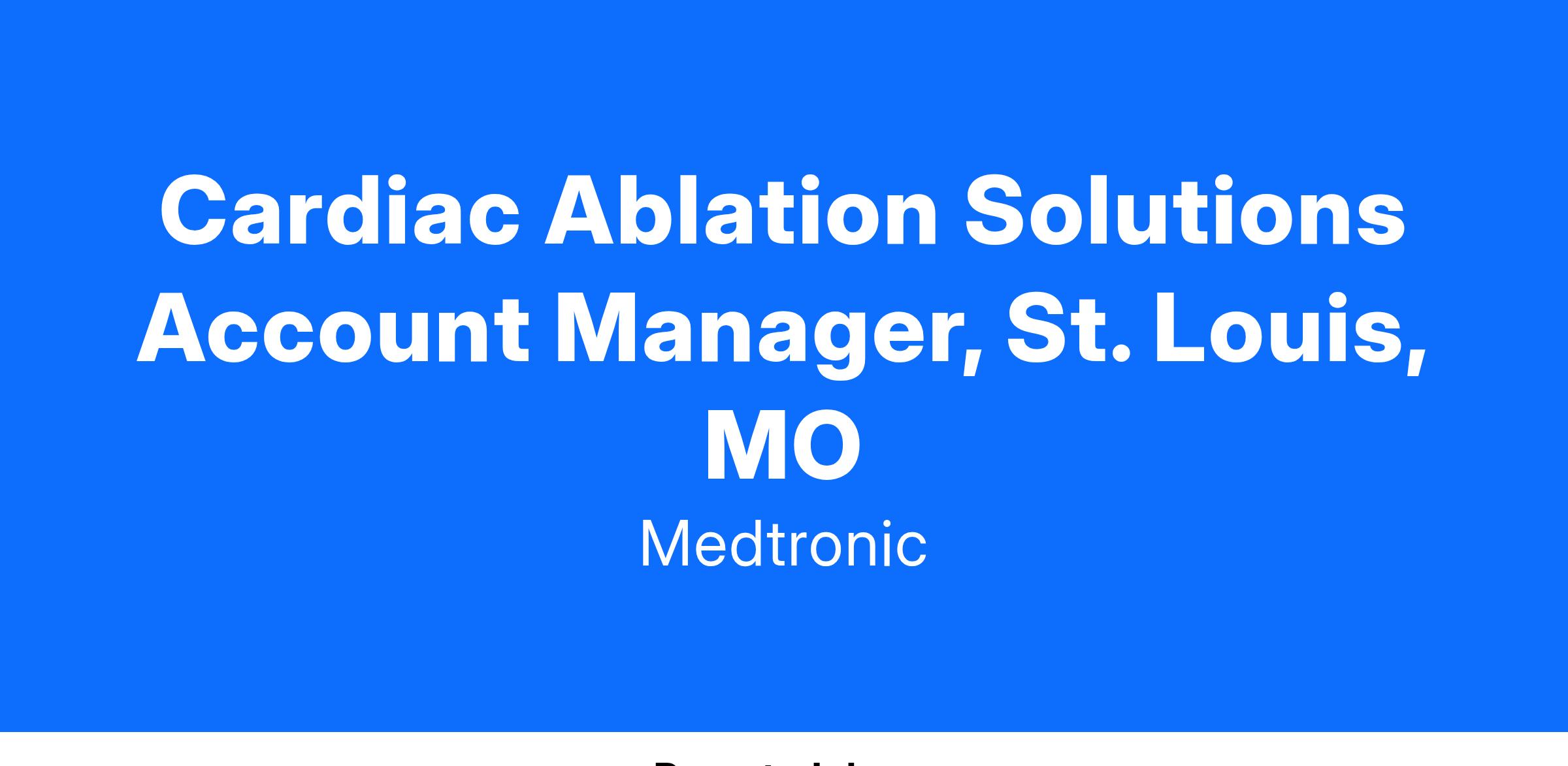 To gain market share and grow market in the Cardiac Ablation Business (CAS) by promoting, selling, and servicing Medtronic's CA Solutions’ products within assigned territory.