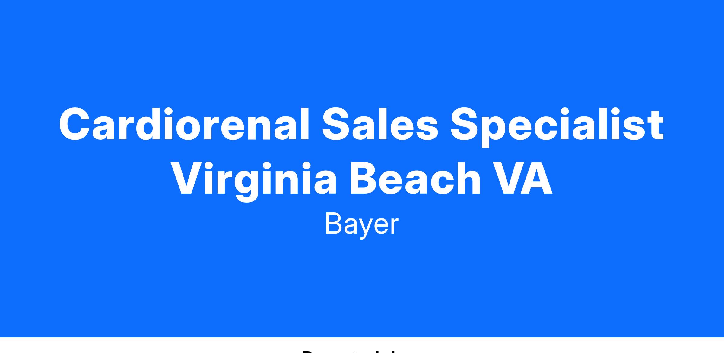 Cardiorenal Sales Specialist Virginia Beach VA