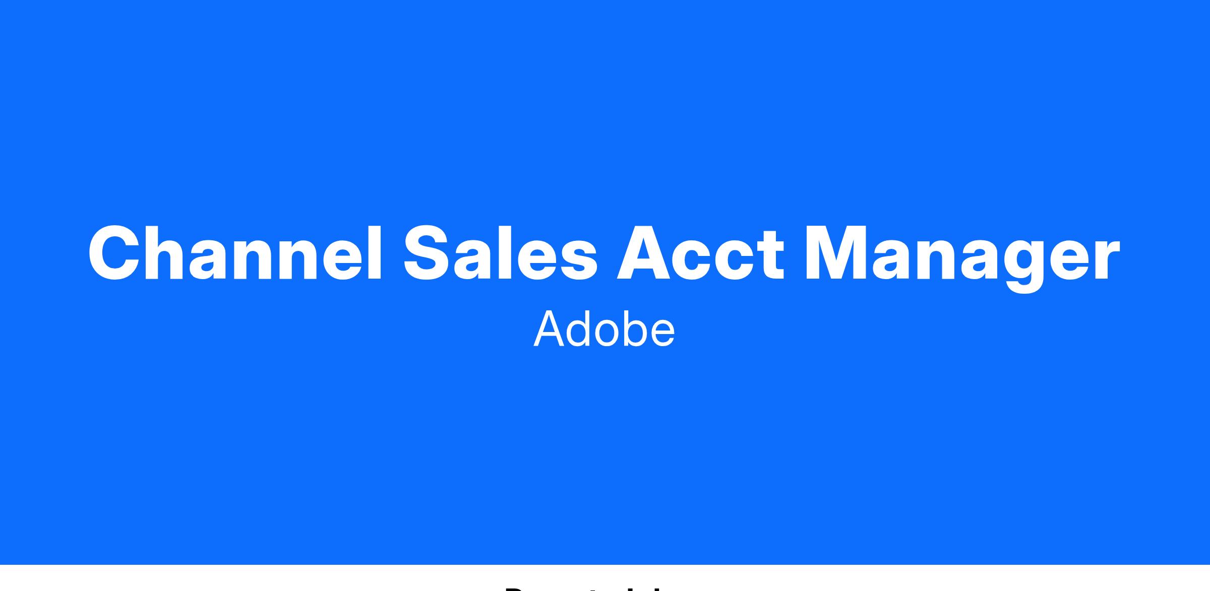 We are currently seeking a highly motivated and experienced Senior Channel Account Manager to join our team in Chicago, IL. As a Senior Channel Account Manager at Adobe, you will be responsible for managing our channel partner relationships and driving sales growth in the region.