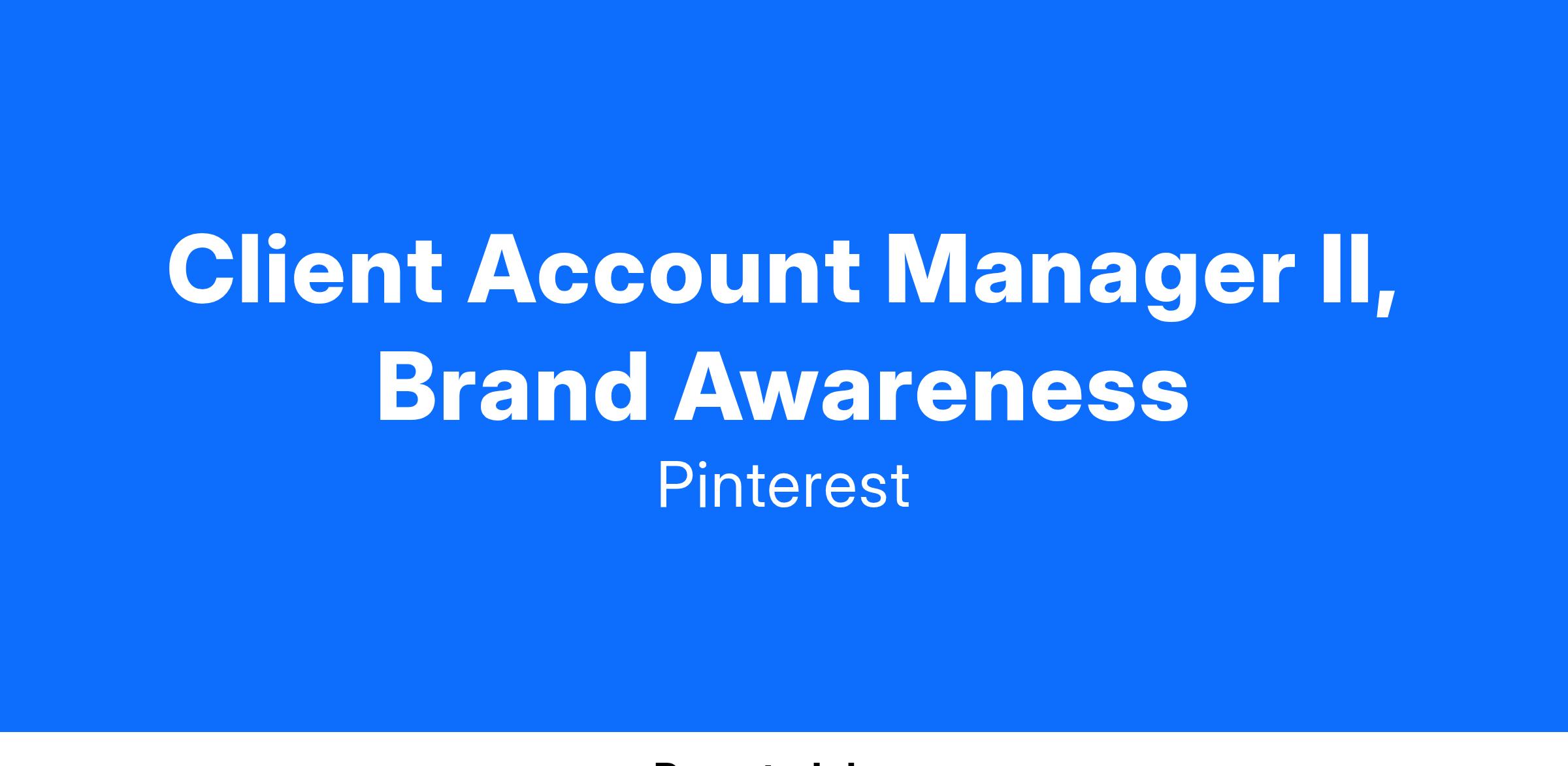 Lead client engagements: Actively participate in client meetings, understand their objectives and challenges, and present tailored solutions to drive success. Address partner questions or concerns professionally and patiently, identifying opportunities to promote multiple Pinterest solutions.