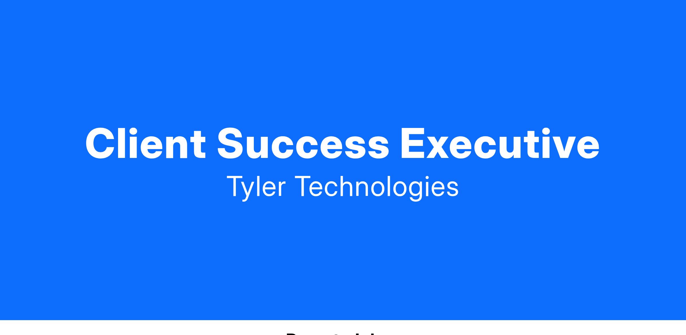 - Measure and report regularly on client health, including weekly tracking and quarterly account reviews with Tyler Executive Leadership Team.