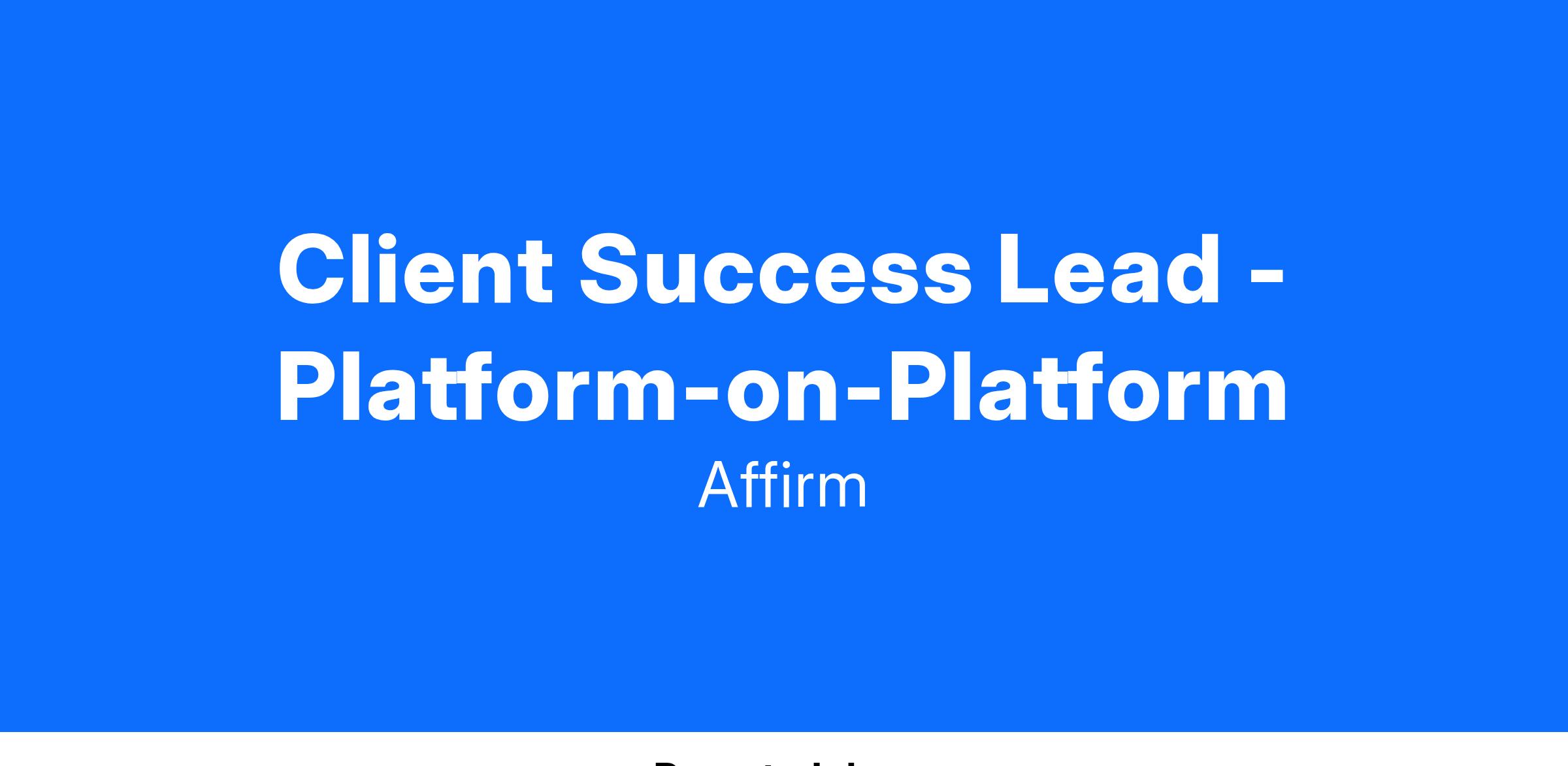 We are seeking a dynamic and experienced Client Success Lead (CSM) to join our team. The ideal candidate will have 4-6 years of proven client experience, preferably in the financial technology sector, with a strong track record of managing diverse portfolios. The CSM will work with our strategic platform partners to set the direction of their programs, build internal advocacy and understanding of the Affirm platform, and implement initiatives that will expand the usage of Affirm within their channels. The Client Success position requires outstanding relationship management and program management skills.