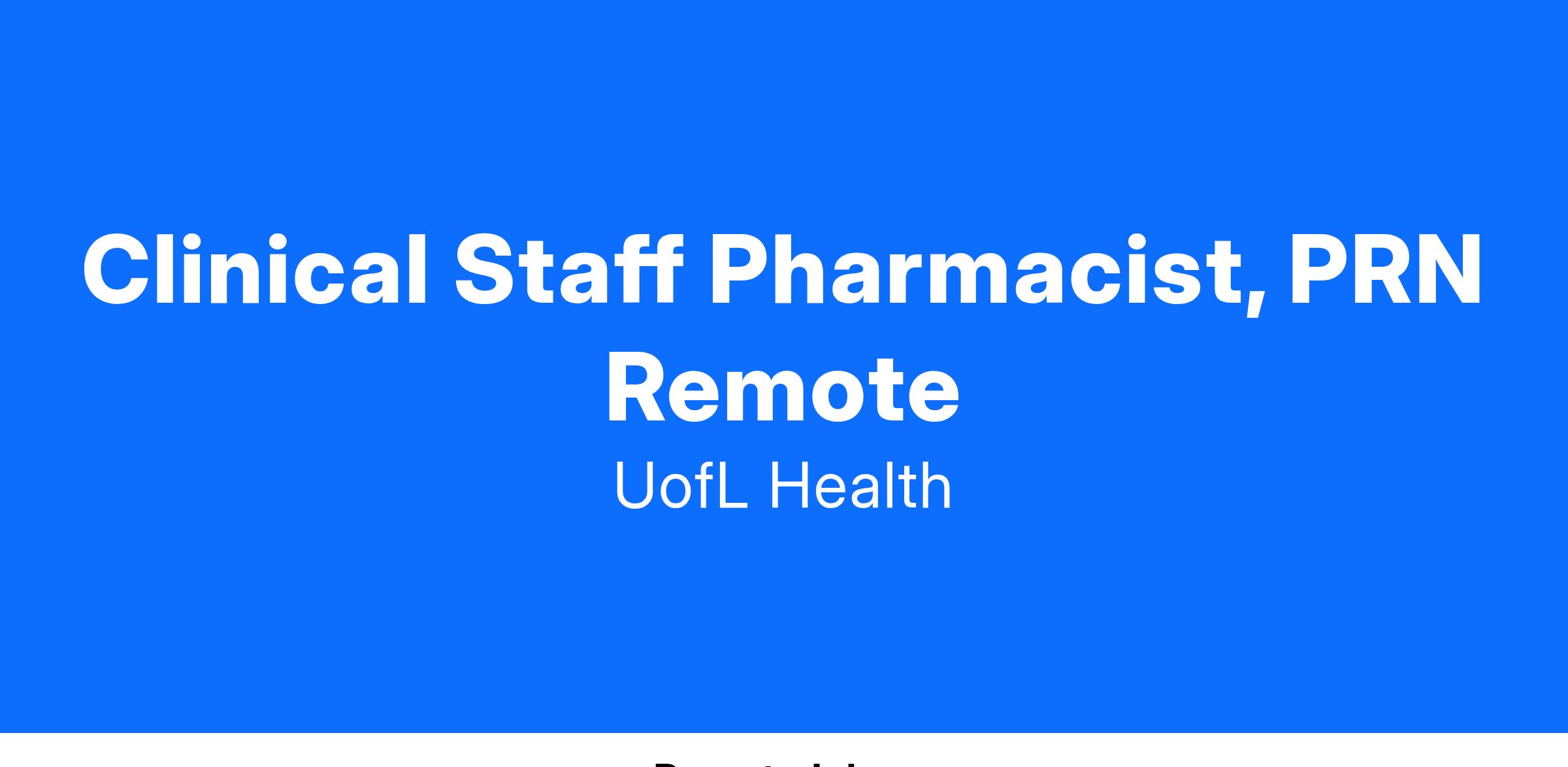 Clinical Staff Pharmacist, PRN Remote