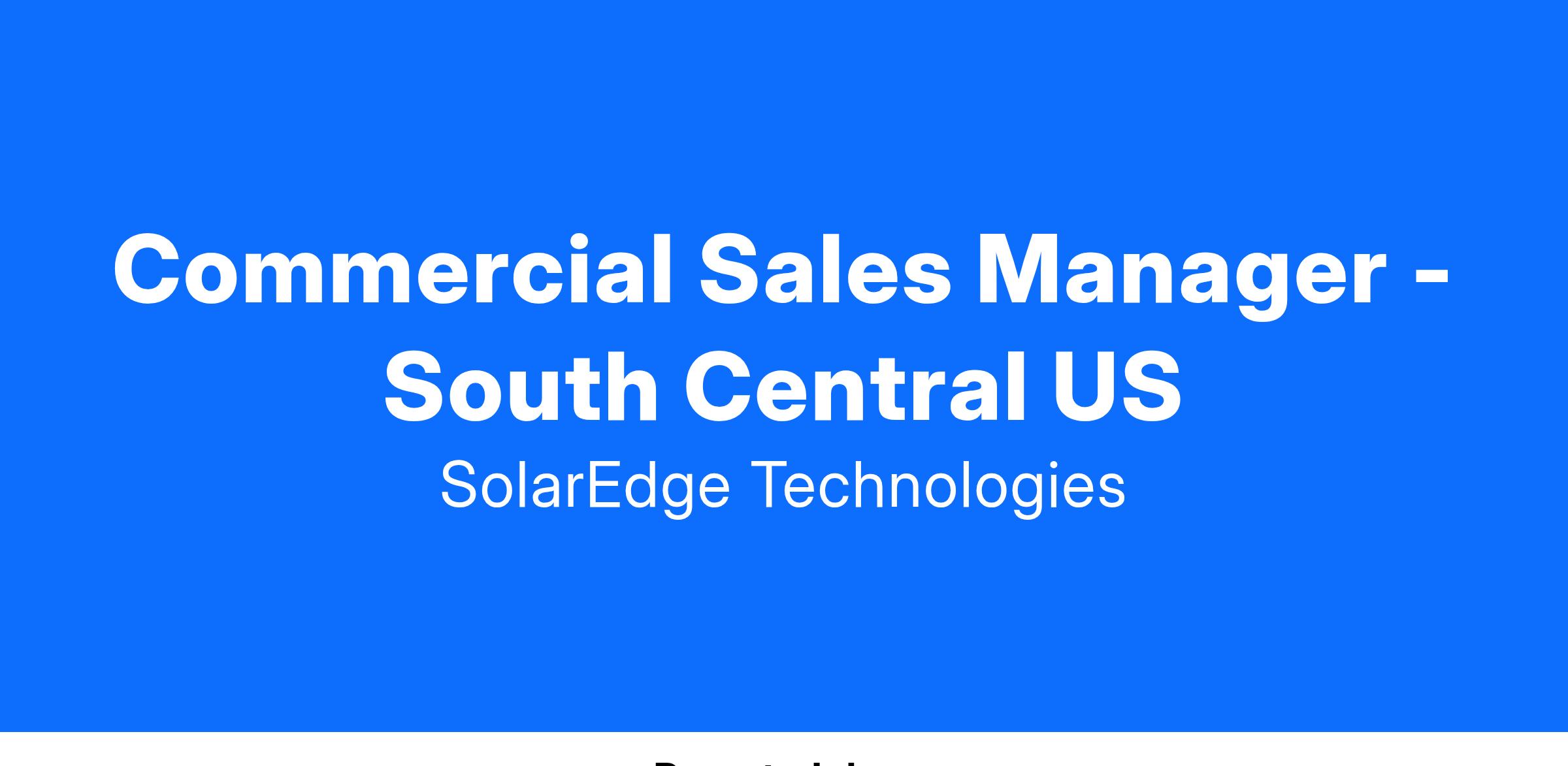 Position: Commercial Sales Manager – South Central US