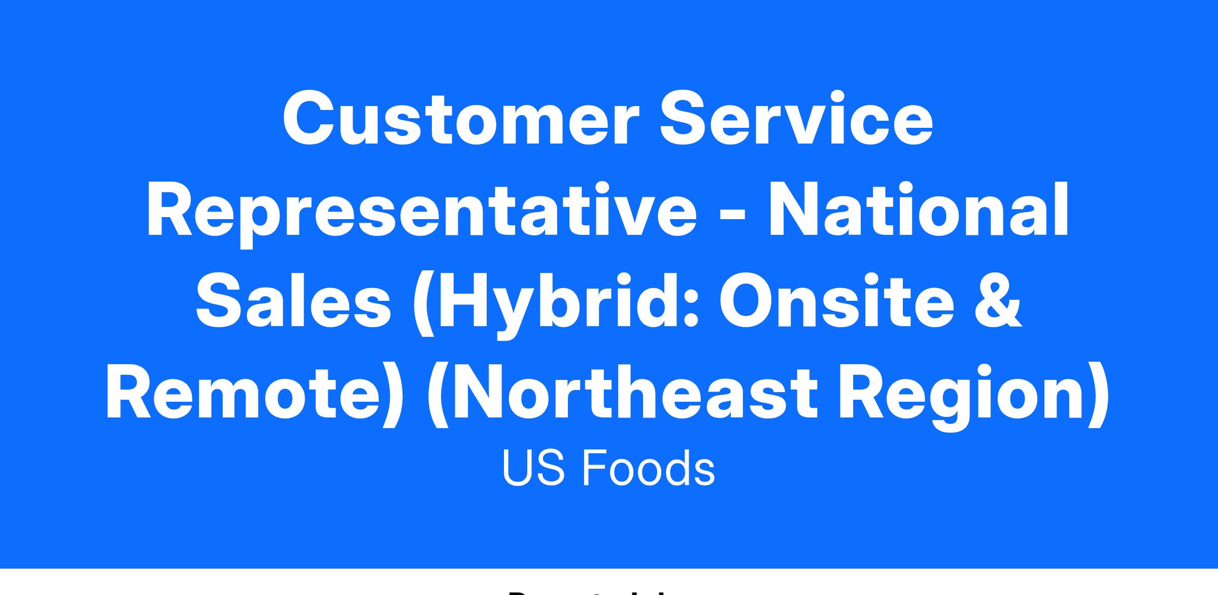 This position has been segmented as hybrid meaning the work is a combination of approximately 90 percent remote/virtual and 10 percent onsite at distribution center offices located anywhere in the Northeast Region of the United States as follows: Fishers IN, Twinsburg OH, Cleveland OH, Wixom MI, Greensburg PA, Manassas VA, Buffalo, NY, Pittston PA, Allentown PA, Bridgeport NJ, Swedesboro NJ, Perth Amboy NJ, Albany NY, Norwich CT, Seabrook NH, within a 50 mile distance to the listed Distribution Offices.Ready to build a career with a company that’s leading the foodservice industry?