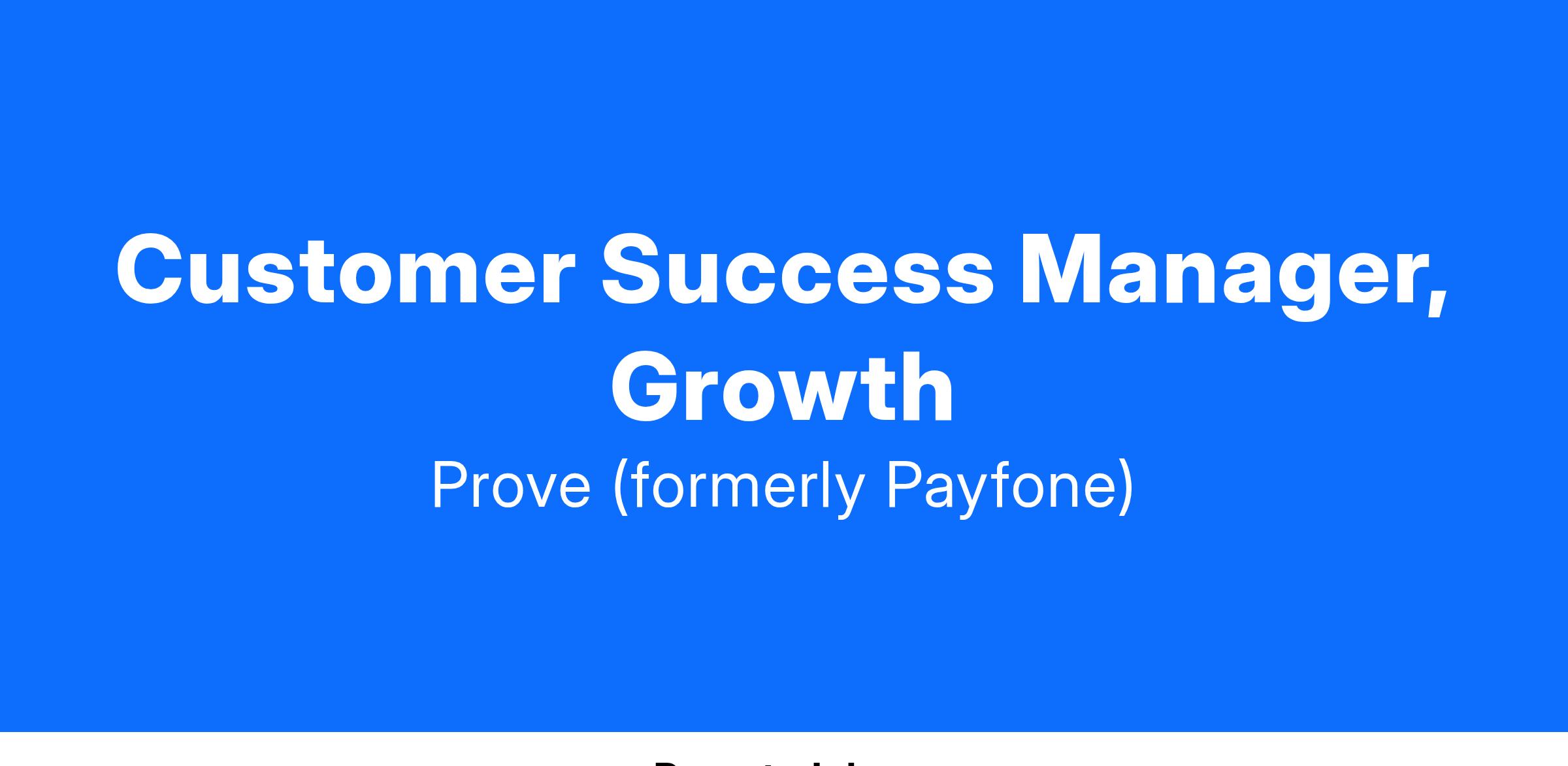 The Customer Success Manager will be client focused and Prove product savvy. You are someone who wants to blend people and technology to drive and exceed successful outcomes for our clients. You are naturally curious and thrive on learning how technology works to solve problems. You pair your knowledge and experience to partner with and advise clients, ultimately acquiring deep knowledge of the client’s organization and business objectives. As CSM, you will be pivotal in helping the account management team in facilitating a streamlined approach for support. You are passionate about building strong relationships with internal customers cross functionally to help forge strong customer relationships, delivering value, identifying growth potential, and ultimately turning customers into raving Prove fans!