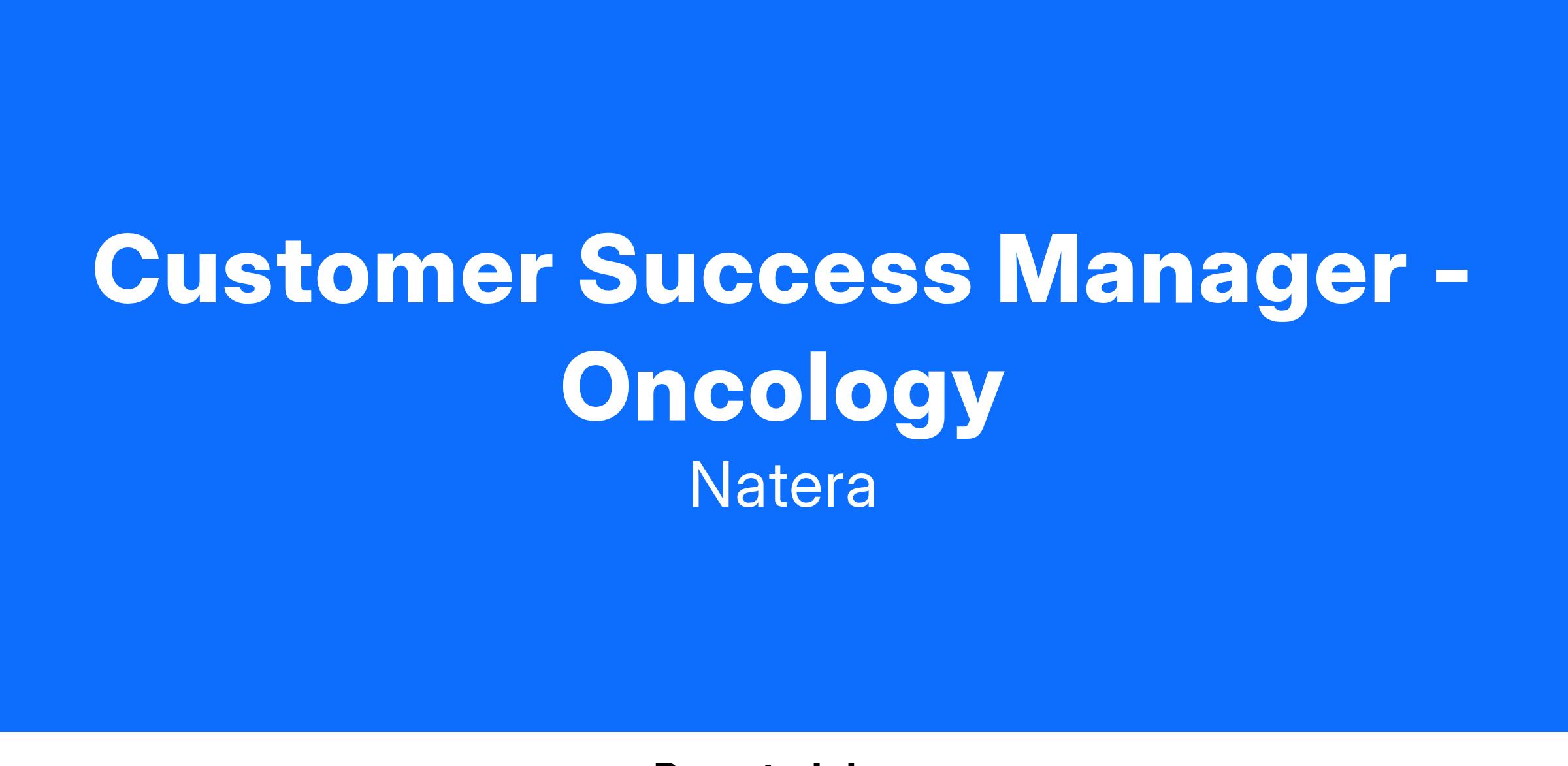 The Customer Success Manager will sit within Natera's Oncology division and will be responsible for establishing relationships with Natera’s Oncology customers to drive strong adoption of our products and programs. This is an ongoing customer relationship/account management role, focused on increasing revenue while providing a solid continuum across all elements of the customer lifecycle. Experience in developing and growing client relationships is required. This role will serve the same function as an Associate Customer Success Manager role, but is expected to have higher rates of client satisfaction, retention, and have the requisite skill required to turn lost/down clients around.