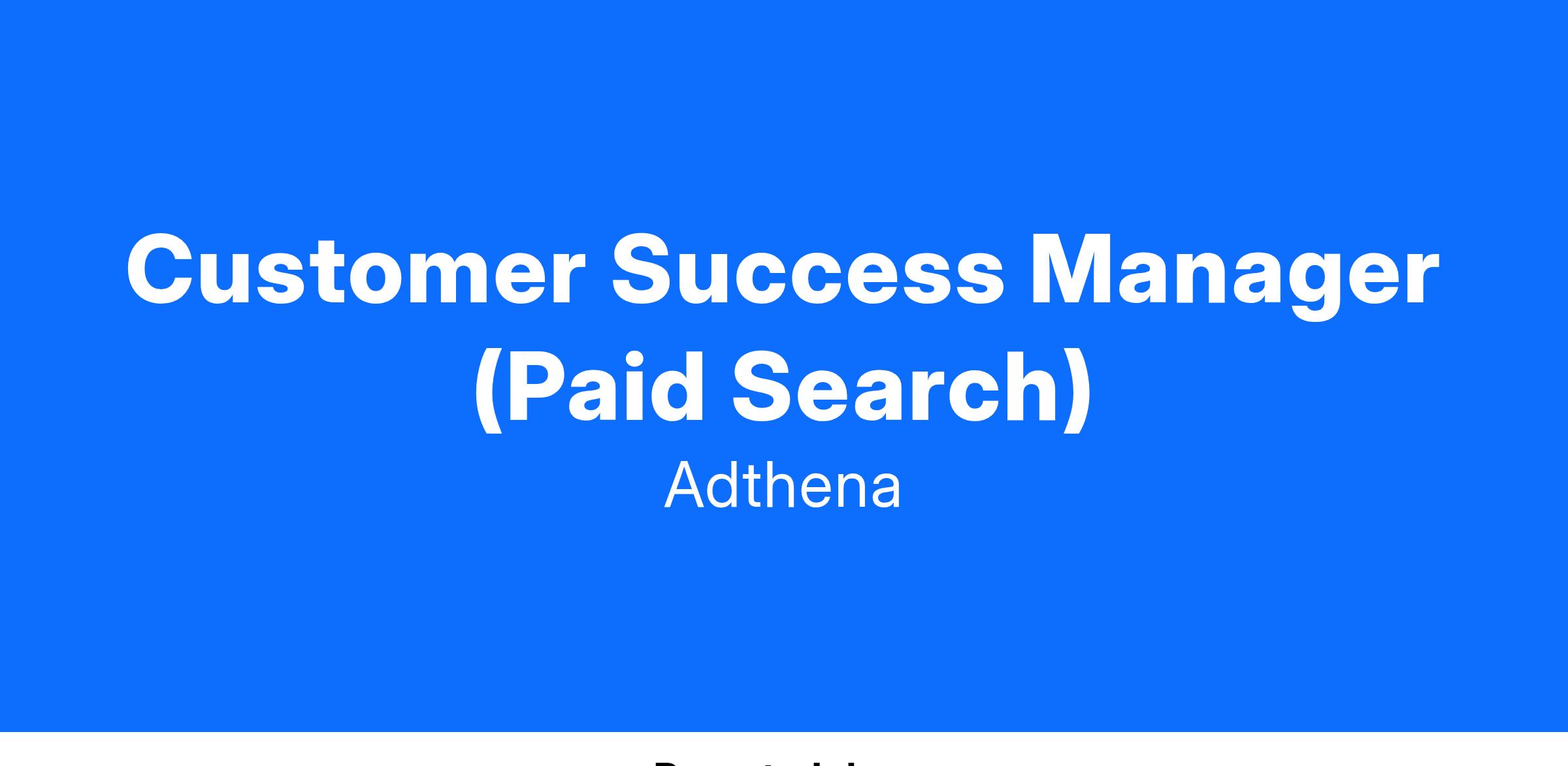After 18 months, you will have: A proven track record as an Adthena CSM, where you can further your career as an individual contributor or explore a management career path.