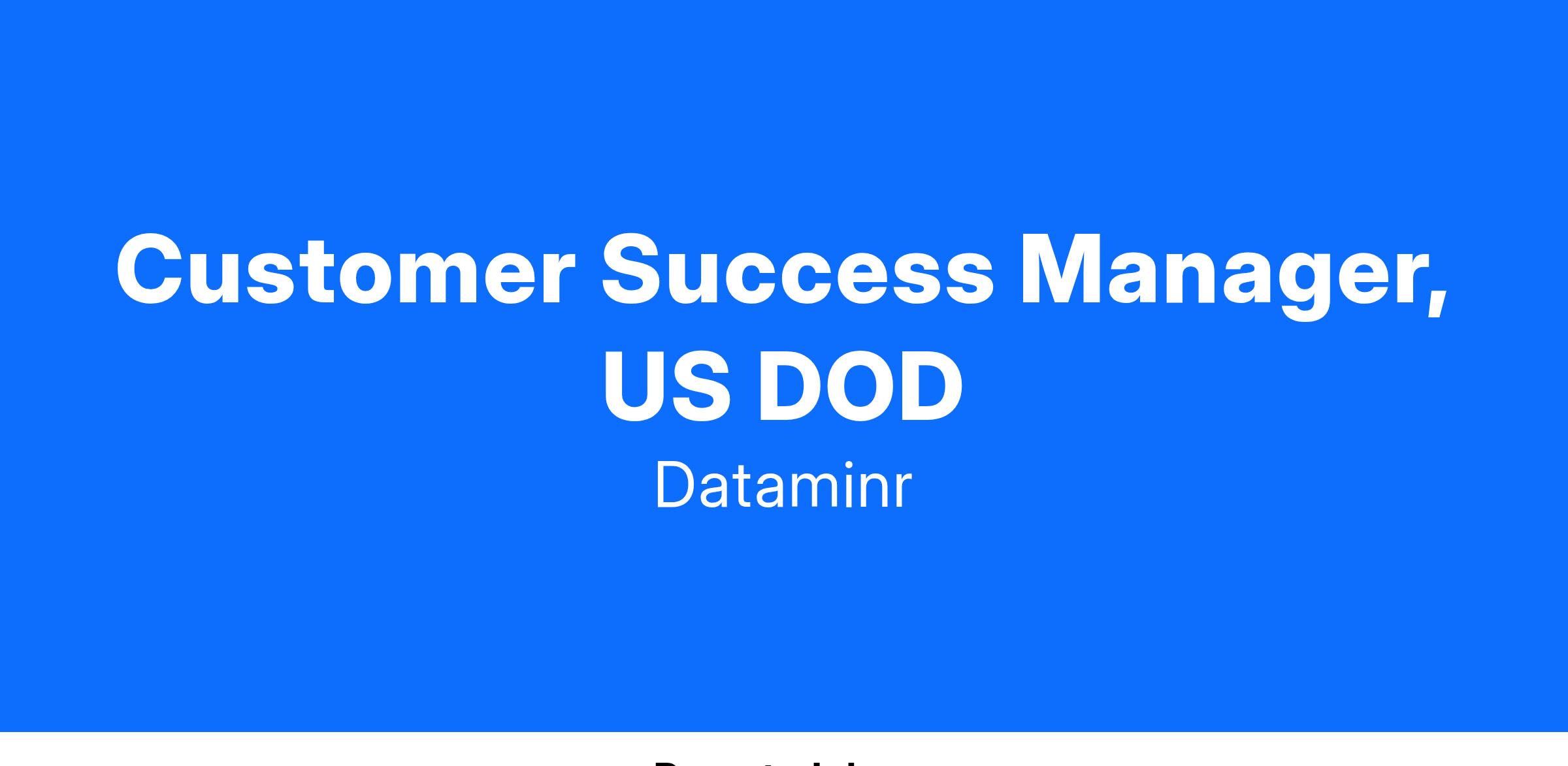 You're self-motivated and self-directed with a passion for building and maintaining relationships with customers, fully understanding their needs, and advocating on their behalf. You understand your customers’ strategic objectives and help them succeed as an expert on Dataminr’s First Alert product. You know major trends and events impacting US national security, publicly available information, and big data and can translate these into actionable insights for your customers.At Dataminr, we are over 600 talented individuals, spanning seven global offices, united by our passion to use AI for the greater good and be agents of positive change in our company and in our communities.