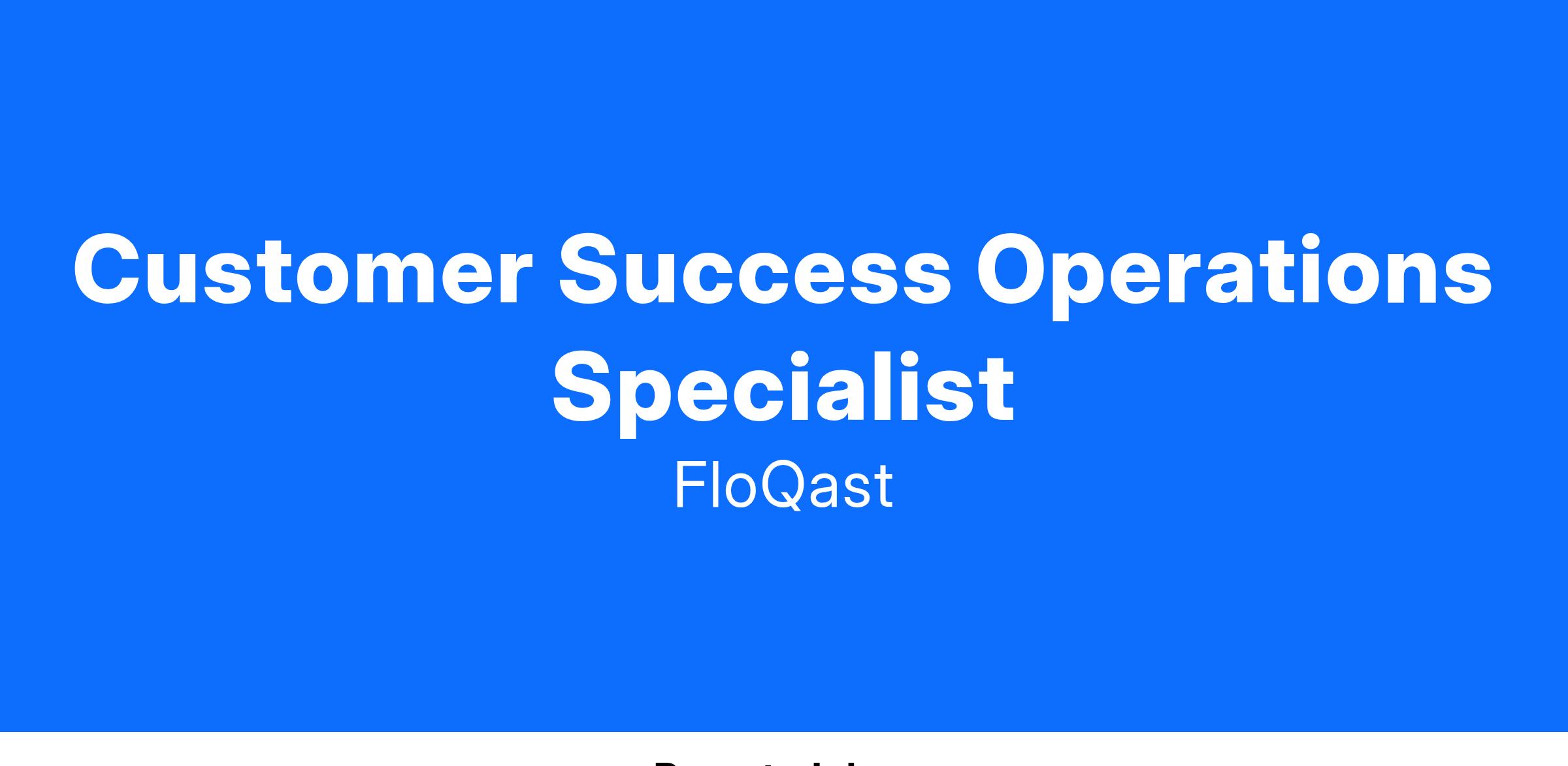 FloQast is seeking a Customer Success Operations Specialist to support the Revenue Operations organization's internal operations and growth with an emphasis on post-sale operations. This person will be an integral contributor to our overall Customer Success and RevOps strategy and will work directly with management to drive process improvements and operational efficiency to enable FloQast to continue to provide a best-in-class customer experience. This role requires someone who is organized, process-oriented, data-driven, eager to learn, and not afraid to execute quickly.