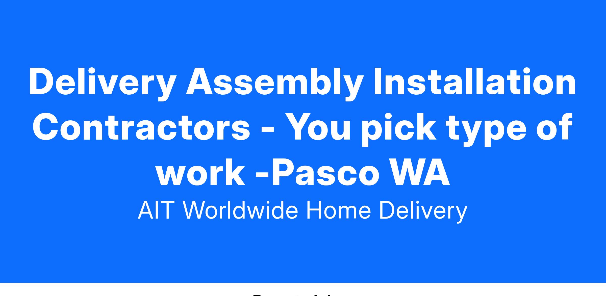 AIT Home Delivery is a division of AIT Worldwide Logistics. We have multiple types of delivery and assembly work available is 46 states. Currently in your area the following work is available.